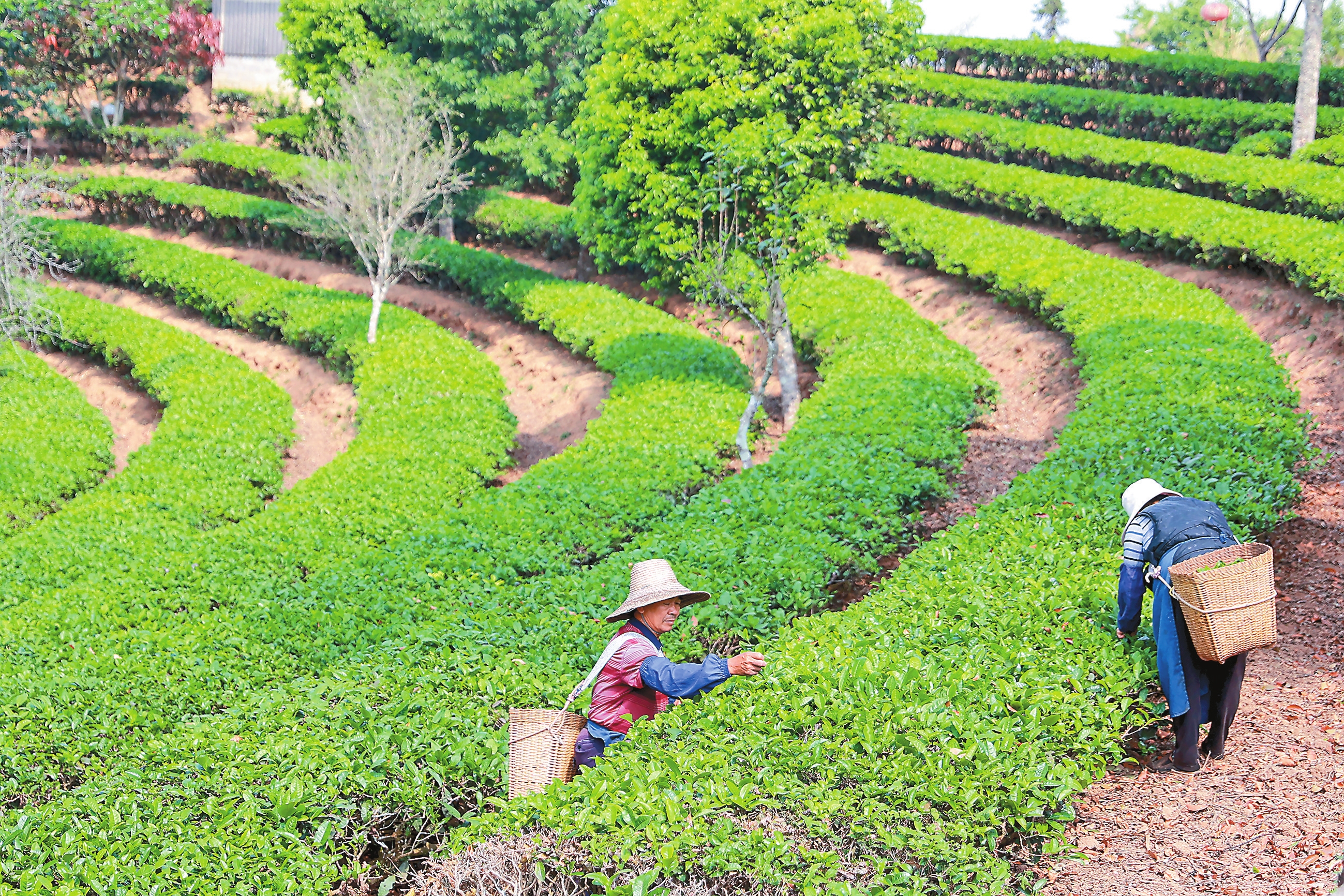 清明时节,云南各地的茶园陆续进入春茶采摘期。在距离普洱市区21公里的中华普洱茶博览苑景区,2.3万亩茶园焕发蓬勃生机,茶农们背着茶篓穿行在茶垄间,忙着采摘头茬春茶。景区内,游客不仅可以沿途打卡绝美茶园风光,还可以体验采茶、制茶、品茶、赏茶、斗茶、问茶、游茶和民族风情互动等活动。普洱茶博览苑是涵盖旅游、茶产业、度假养生为一体的复合型旅游度假区,也是普洱市和普洱茶的一张名片。 本报记者 胡妤雅 摄