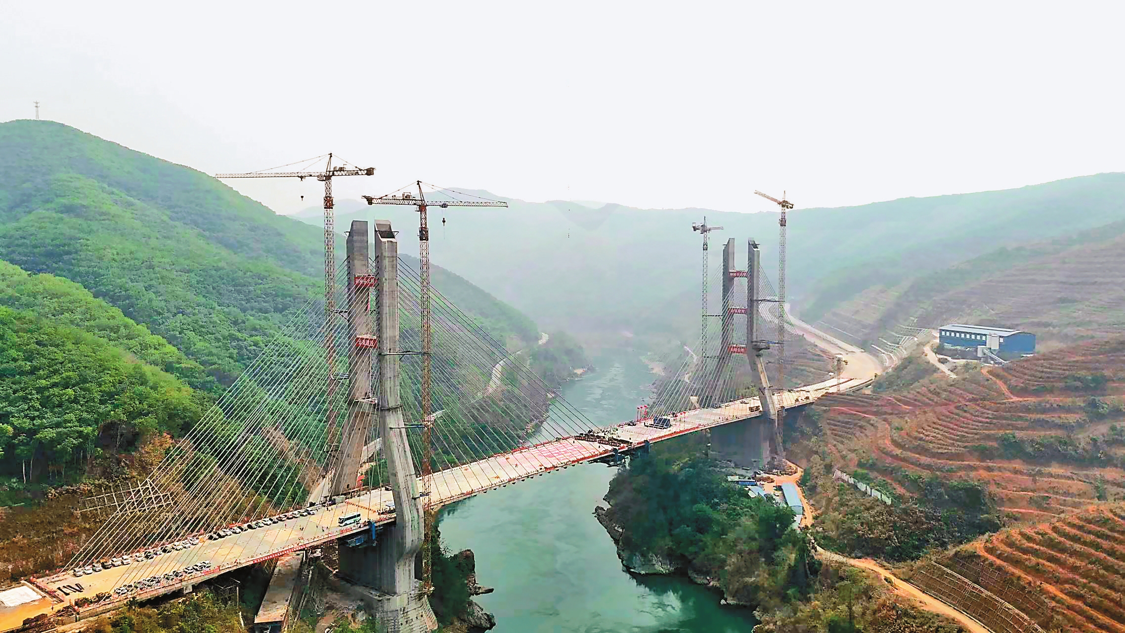 该项目由云南建投集团投资建设、云南省铁路集团有限公司负责施工。在桥梁承台、主塔、主梁、挂索施工过程中,项目研发了大体积承台混凝土施工技术,索塔异形横梁悬臂端少支架现浇法,受限空间条件下斜拉桥超宽长平台前支点牵索挂篮设计与支架法安装技术,多变、异形、大斜率斜拉桥索塔劲性骨架设计与施工技术,索塔横梁异步施工工况下宽幅PC斜拉桥塔梁同步施工等技术,实现了多项技术突破。