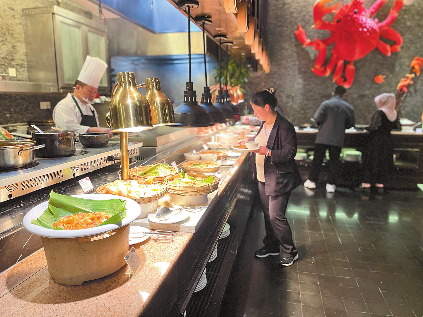 前来参加活动的李女士对娘惹烤鱼、娘惹酱炒文蛤等“娘惹系列”美食尤其感兴趣。“我知道在马来西亚,许多早期华人移民与马来人组建家庭。他们的后代中,男性被称为‘峇峇’,女性叫作‘娘惹’。娘惹菜是中马两国长期来往交流的佐证,也是不同文化互鉴共融的范例。”
