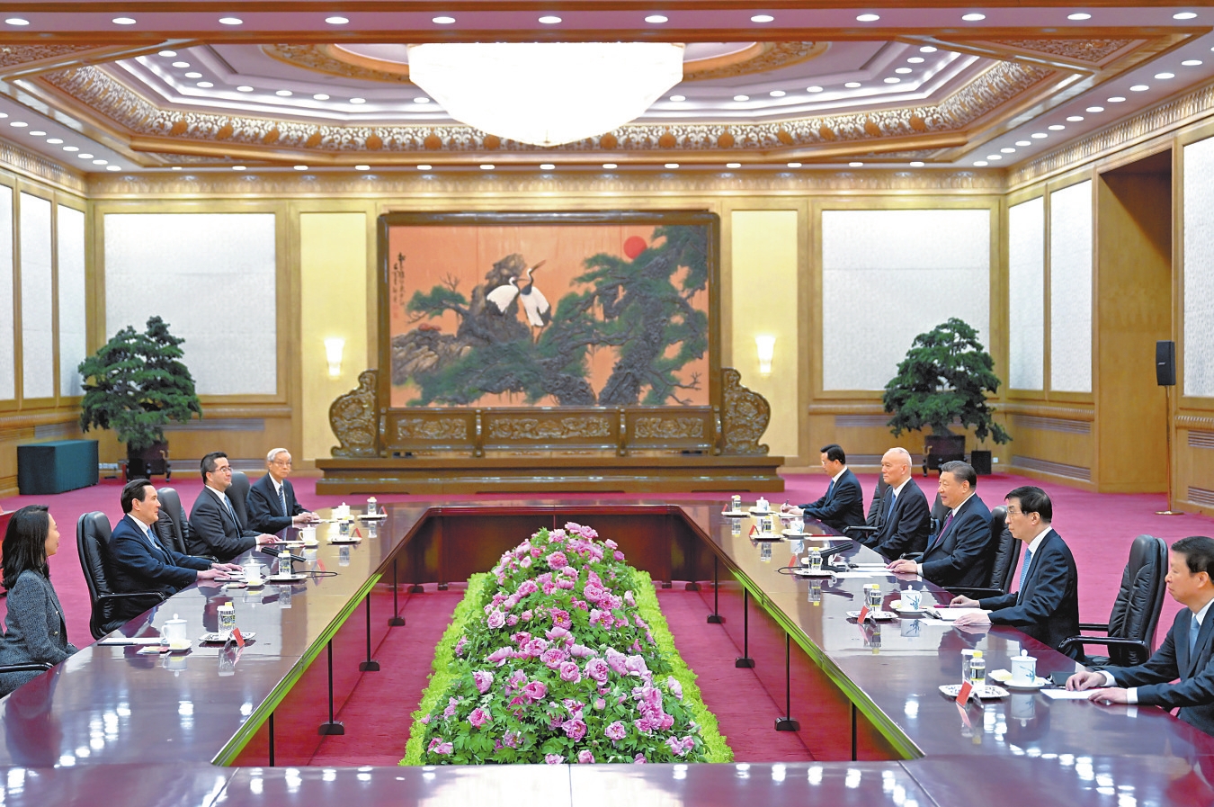 4月10日下午,中共中央总书记习近平在北京会见马英九一行。 新华社记者 鞠鹏 谢环驰 摄