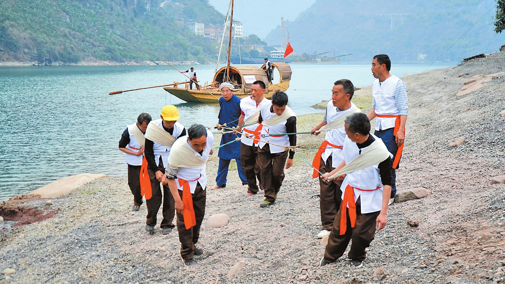 “一看到纤夫,就想起童年的时候,时光一下子就回到了过去。”游客何勇激动地说。金江号子是省级非遗,参与实景演出的村民以前都做过船工和纤夫。如今,金江号子被“活化”成新的旅游业态,村民在传承非遗文化的同时,每天能获得演出收入。“表演金江号子,既能传承非遗文化,又能发展旅游,大家都愿意参与。”71岁的老船工林遐全说。