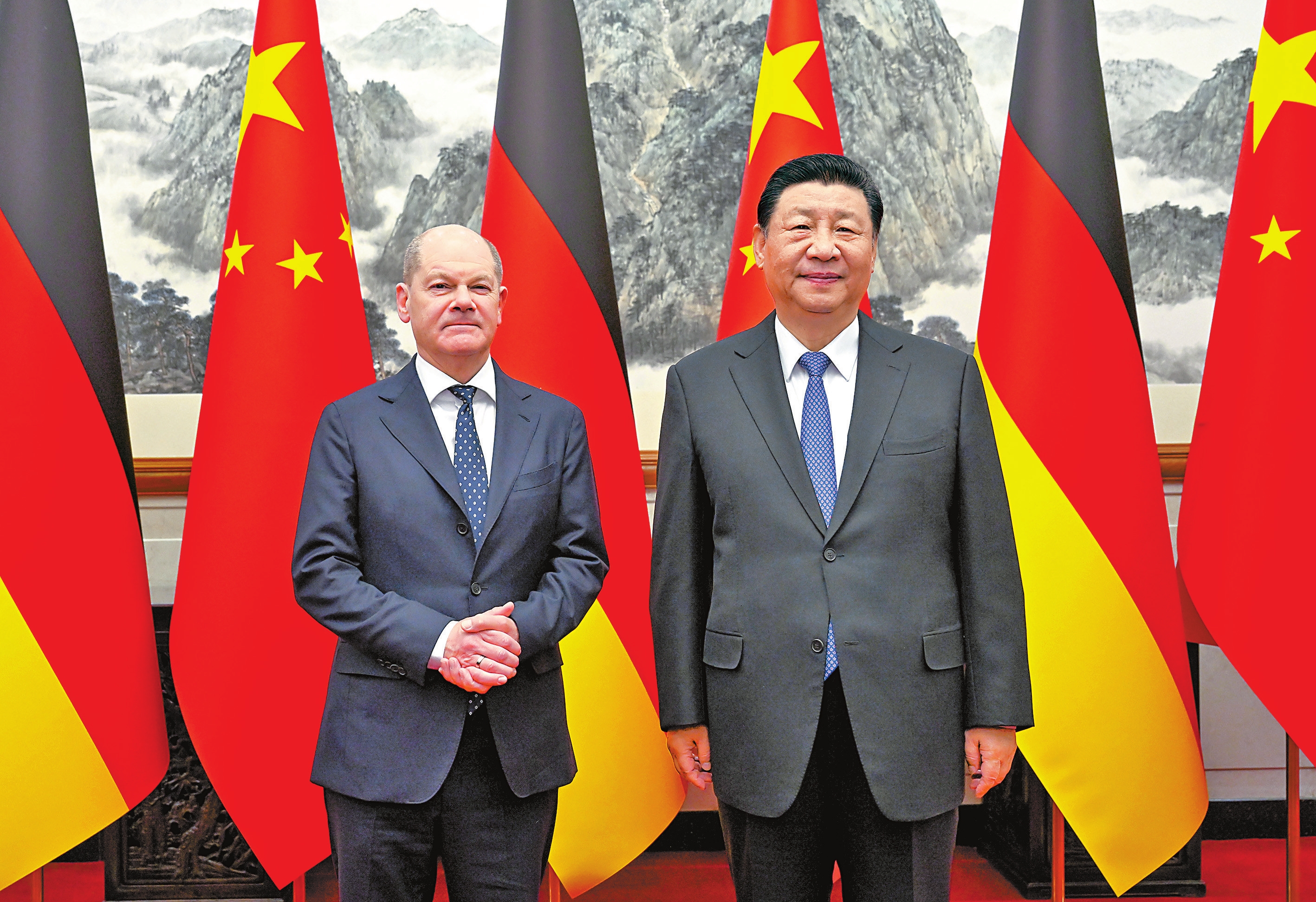 习近平强调,中德两国都曾为人类文明进步作出重大贡献。中德之间没有根本利益冲突,彼此不构成安全威胁。中德合作对双方有利,对世界有利。世界越是动荡,双方越要提升两国关系的韧性和活力,坚持中德关系的合作主基调和发展大方向,牢牢把握中德是全方位战略伙伴这一定位。中国对德政策保持高度稳定性和连贯性。双方应该继续以开放的胸襟密切交往,增进战略互信。只要双方坚持相互尊重、求同存异、交流互鉴、合作共赢,两国关系必将继续行稳致远。