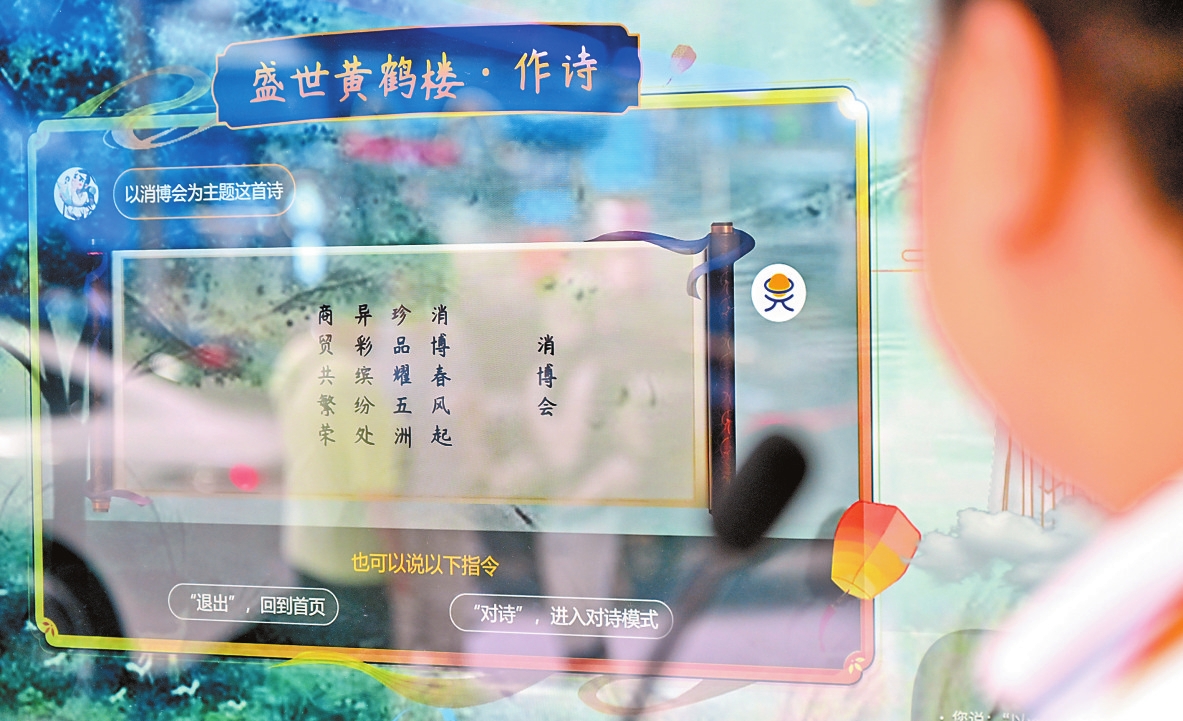 观众在消博会上观看AI作诗。