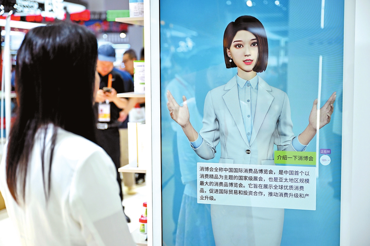 消博会上一款“AI数字人”在回答观众提问。