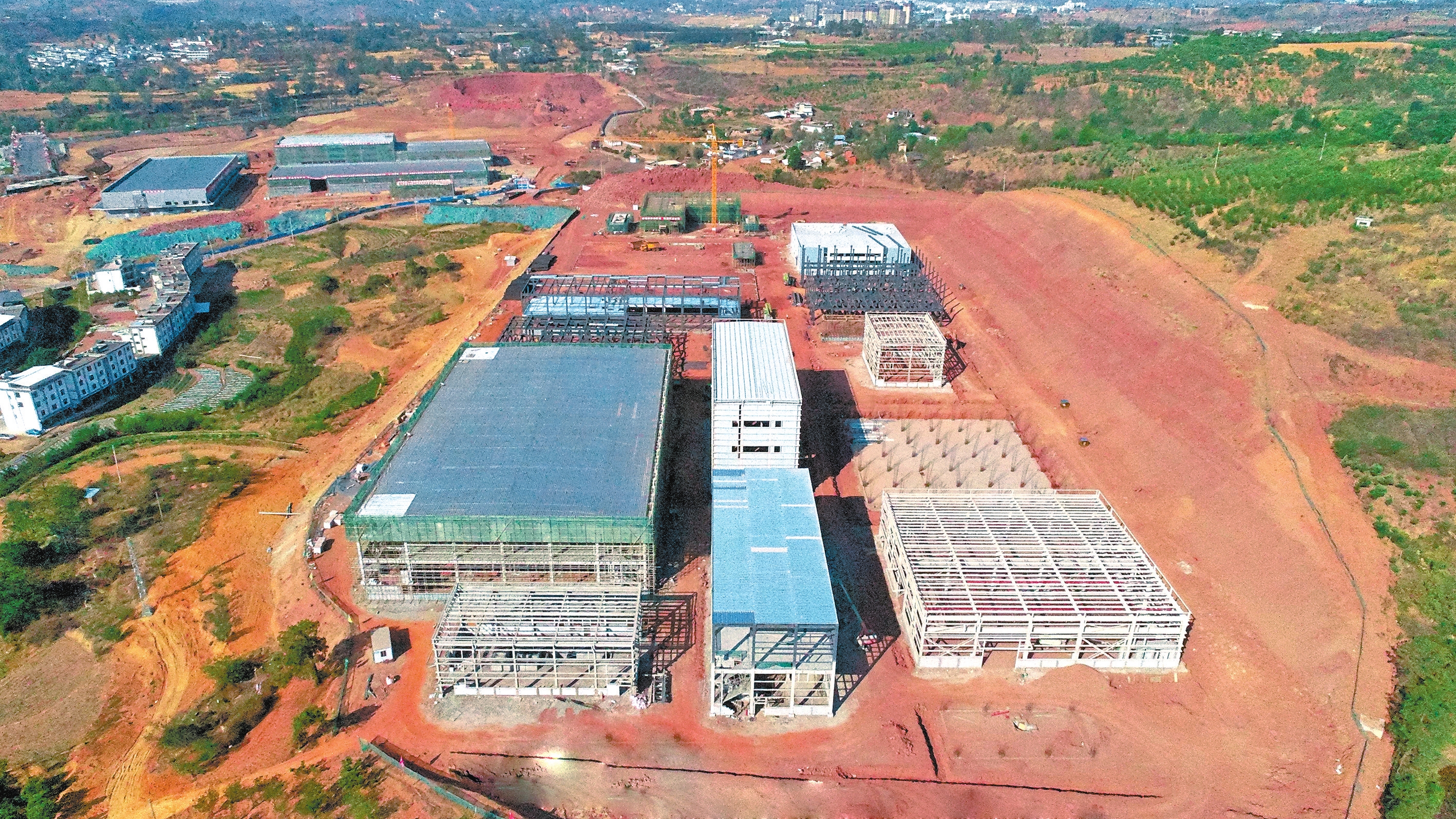 连日来,由中铁六局承建的永攀物流港一期永仁县农特产品深加工园区项目正在紧锣密鼓地施工。目前,农特产品配送中心已正式启动运营,核桃精深加工、芒果精深加工厂区正在加快建设。该项目建成后,将进一步延伸当地农产品加工产业链,做强产业支撑,增加产品附加值,助力云南“土特产”做优做强,促进产业振兴。本报记者 胡晓蓉 通讯员 于海 摄