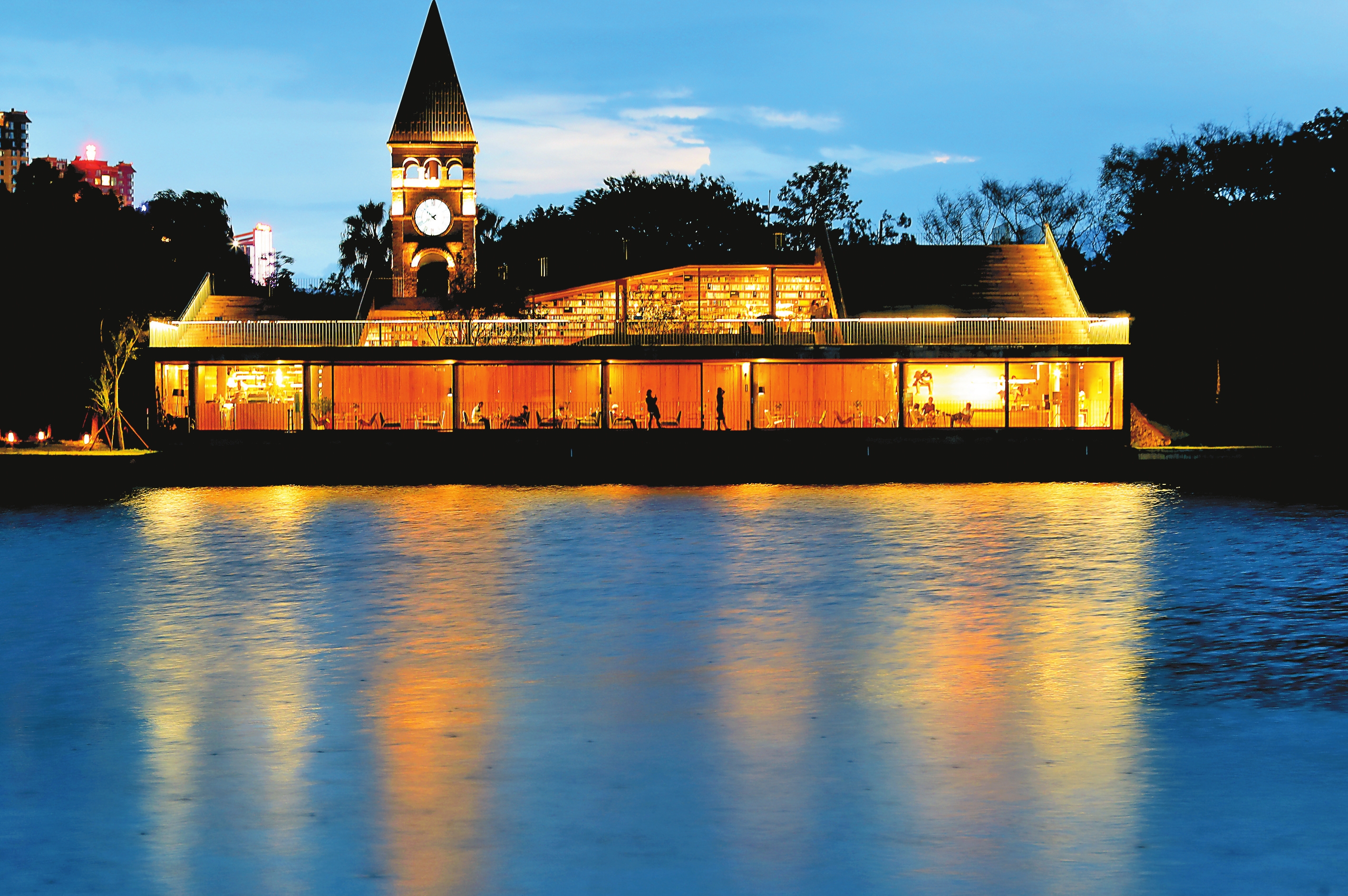 每逢节假日,位于蒙自南湖之滨的西南联大先锋书店吸引不少市民、游客前来休闲、阅读;夜晚的西南联大先锋书店与南湖夜景交相辉映,人们在这里感悟西南联大的精神力量,体验蒙自新人文地标的新时代文化潮流。