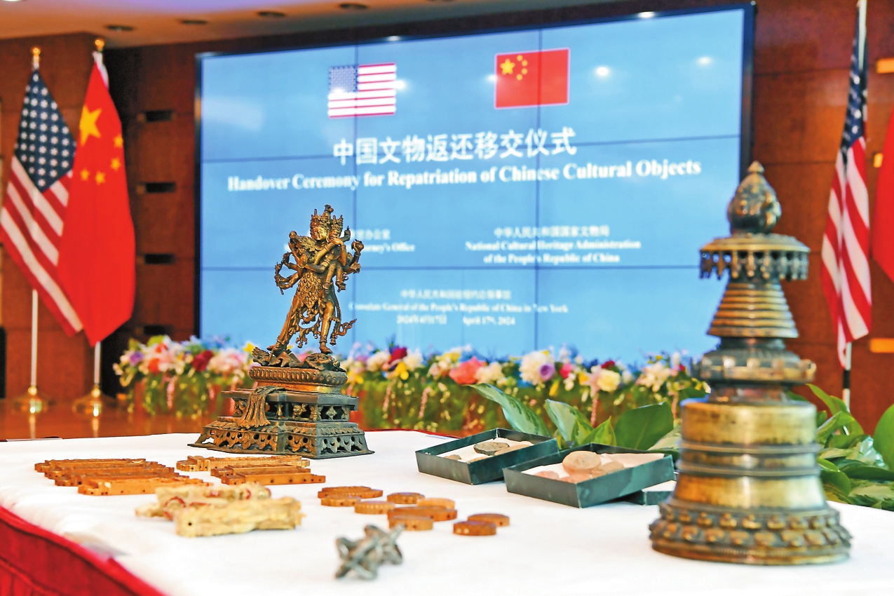 返还仪式17日下午在中国驻纽约总领馆举行。美国纽约曼哈顿区检察官办公室将缴获的38件中国流失文物艺术品移交中国政府。