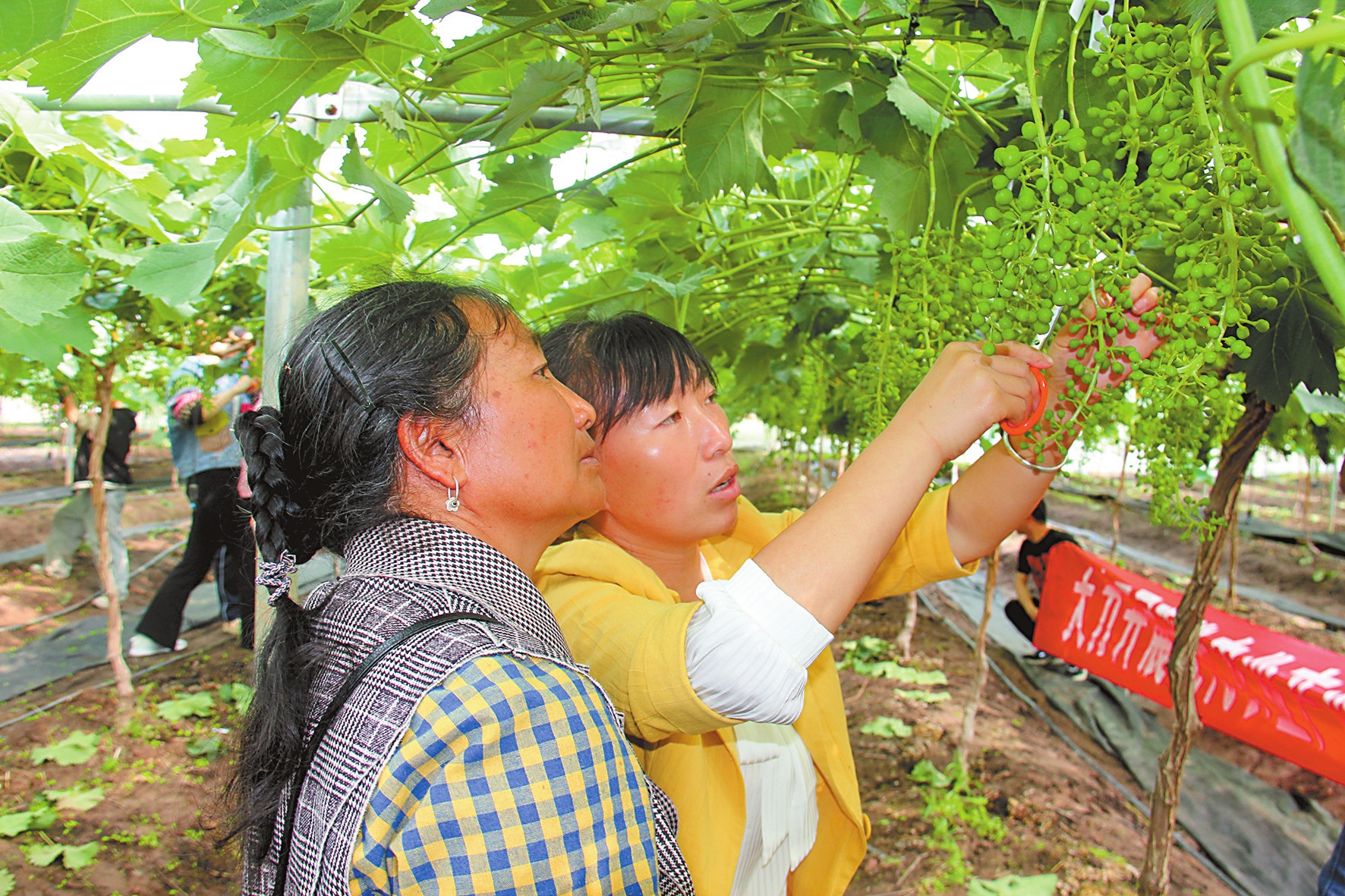 搬迁到县城的胡锡刚参加了社区组织的葡萄、蓝莓种植管护技能培训,拿到证书后的他,现在在基地务工,一个月有3000多元的稳定工资。