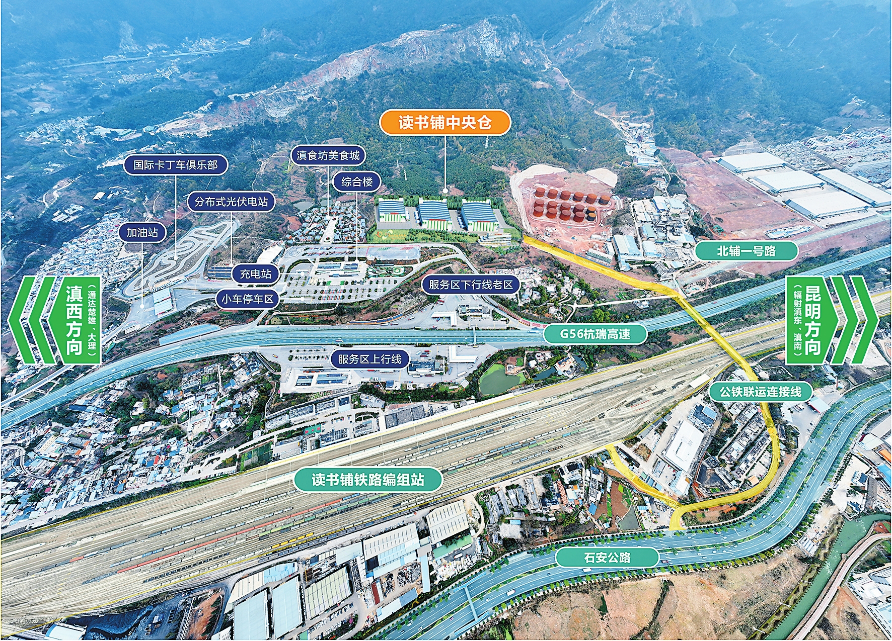 由云南省交通投资建设集团有限公司(以下简称云南交投集团)投资建设的昆明国家综合货运枢纽补链强链项目云南高速公路(读书铺)中央仓开工建设,标志着云南交投集团落实“三大经济”首个绿美通道物流示范项目正式开工落地。