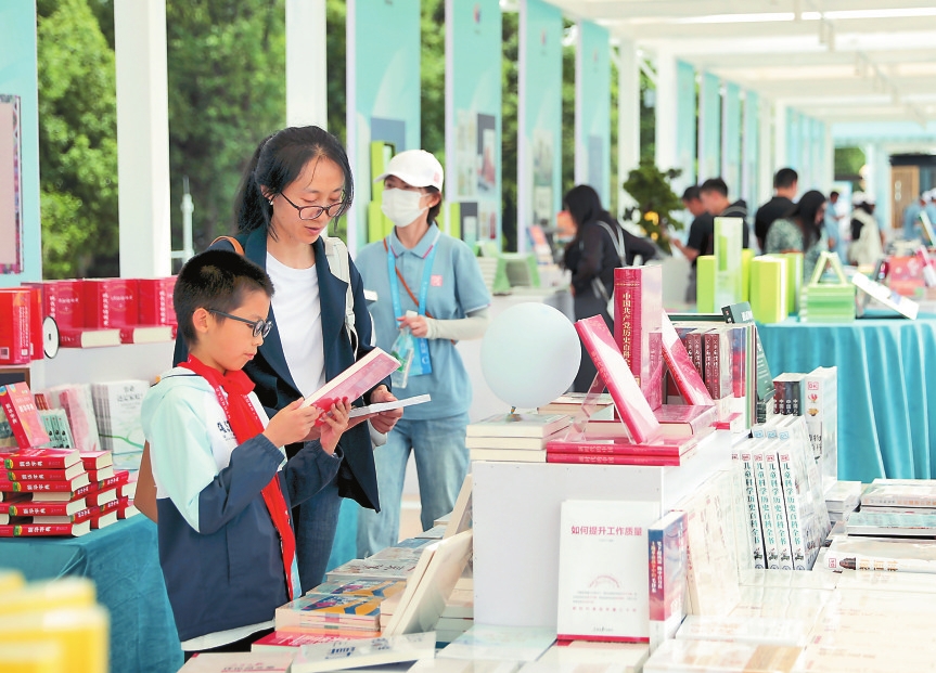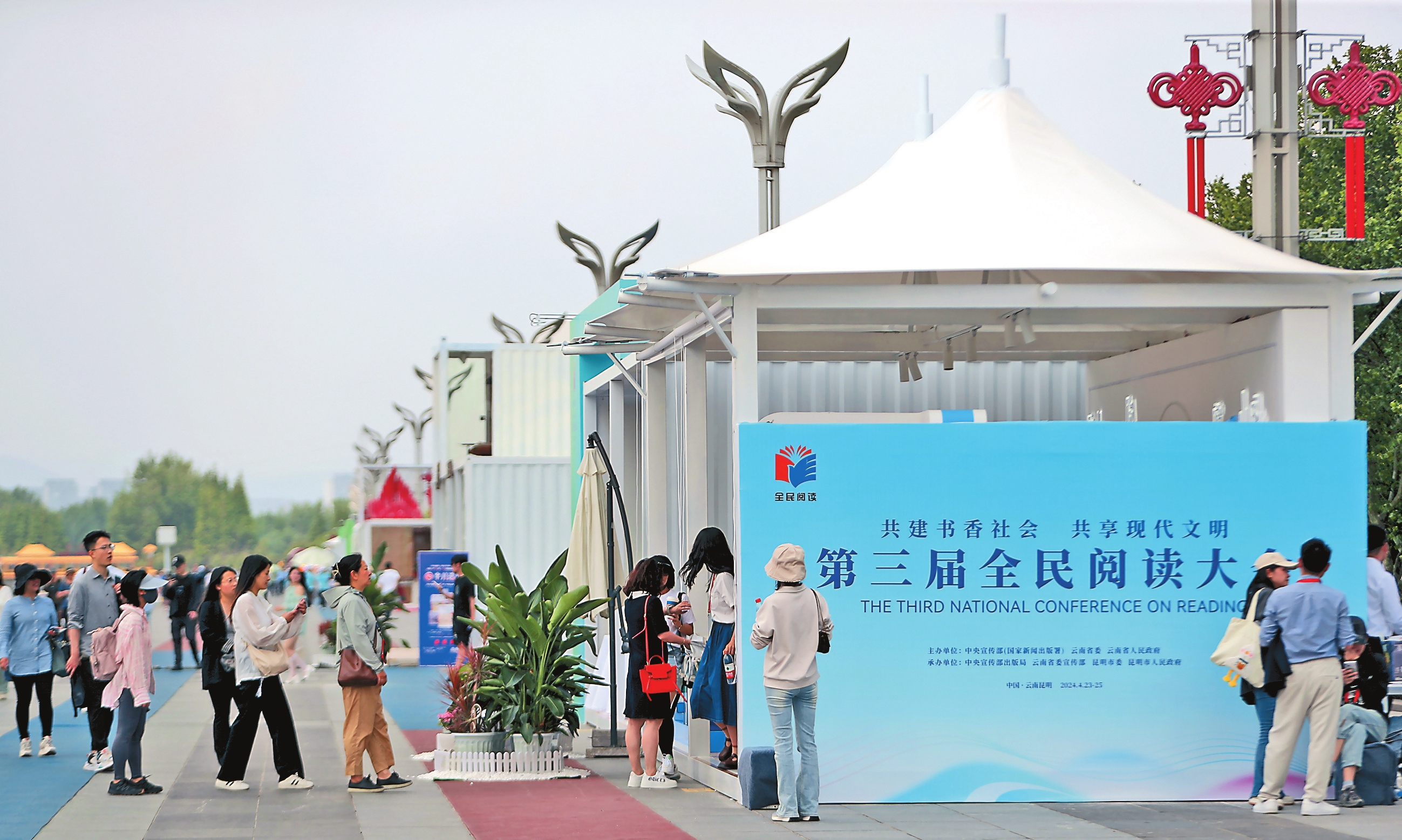4月23日,滇池海埂大坝上的十里书香长廊集中布置了各类与阅读相关的体验场景、艺术美陈装置和书市,吸引了众多阅读爱好者前来围观。本报记者 黄兴能 陈飞 摄