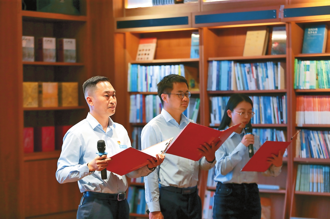 分享会上,职工代表们分享其在阅读党建刊物、红色经典、著作理论、传统诗词、现代小说、家庭教育等书籍过程中感悟到的情怀、哲理。中建二局云南分公司职工代亚涛分享了红色经典书籍《苦难辉煌》。