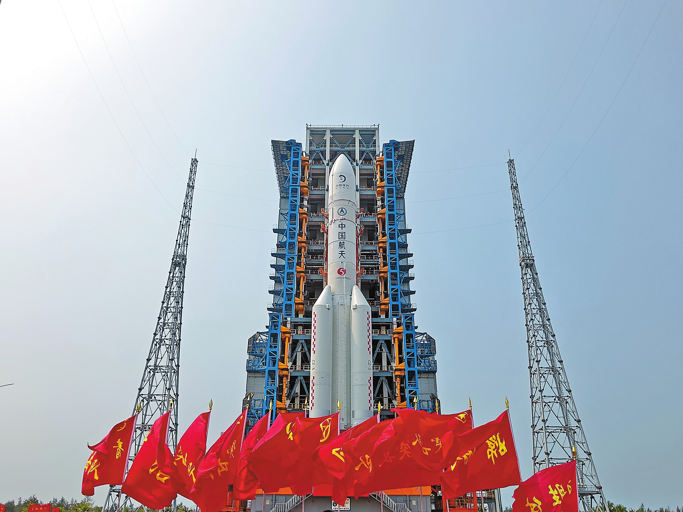 记者从国家航天局获悉,4月27日,嫦娥六号探测器和长征五号遥八运载火箭在中国文昌航天发射场完成技术区相关工作后,器箭组合体垂直转运至发射区,计划5月初择机实施发射。