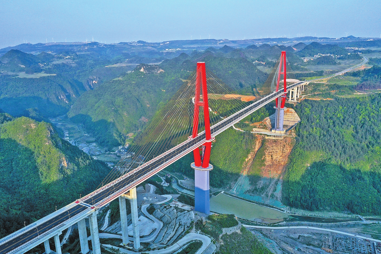 4月27日,由中交二公局承建的贵州龙里河大桥建设完工,实现通车。龙里河大桥位于贵州省龙里县境内,全长1260米,大桥主桥及塔柱设计有观光旅游玻璃栈道、全景观光电梯等旅游设施,是一座兼具旅游和交通功能的大桥。图为4月26日拍摄的贵州龙里河大桥。
