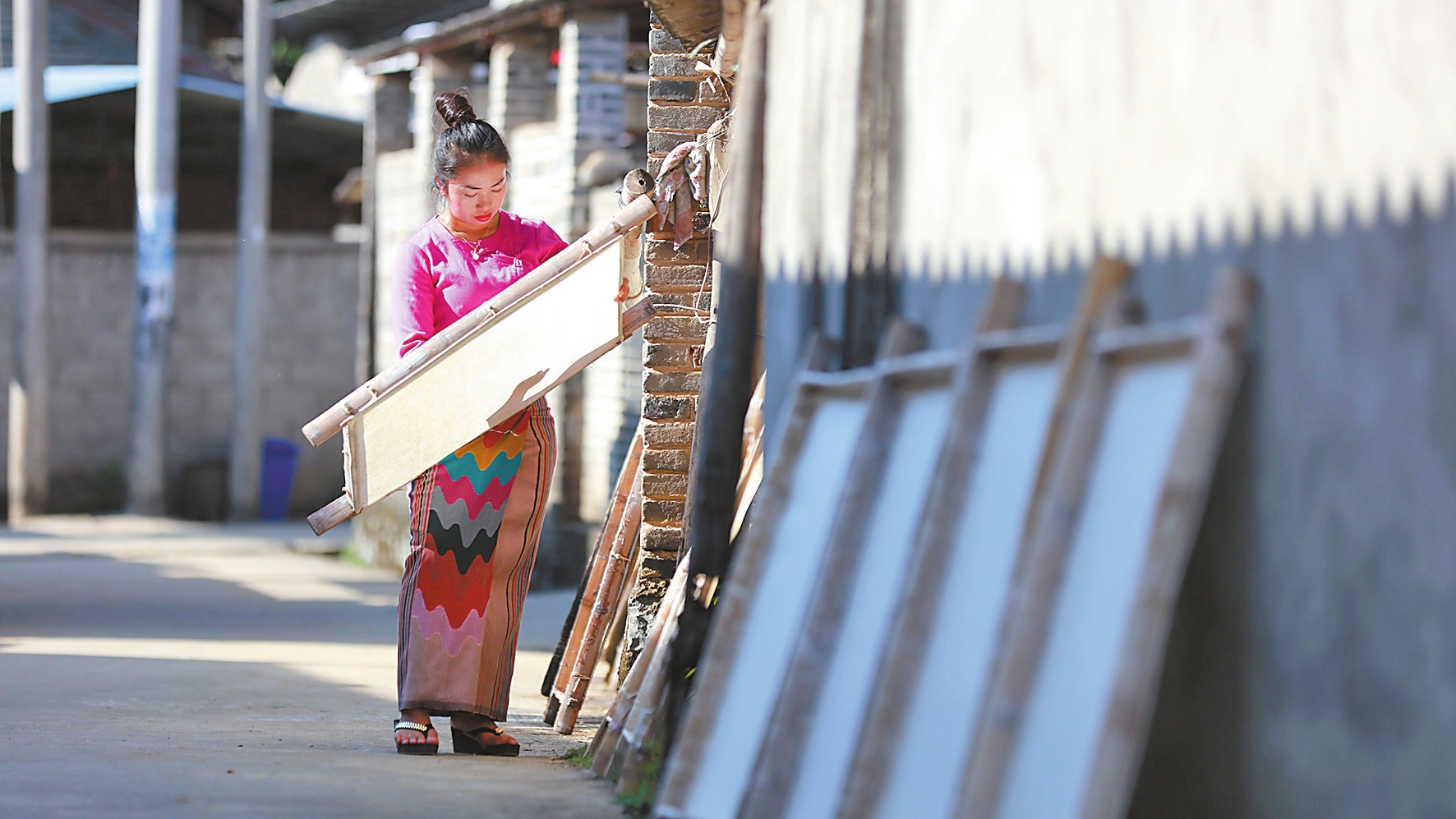 坚持把人才链嵌入非遗产业链,依托傣族构皮手工造纸、翁达藤篾编织、傣族古法制糖、户南土司贡茶制作等非遗传承人才优势,积极探索“非遗+特色产业”的融合发展模式,成功打造芒团白棉造纸、翁达藤篾鼓凳等非遗产业品牌。2023年,孟定镇芒团自然村共产白棉纸180万张,年产值600余万元,成功打造“中华傣家造纸第一村”;“一村一品”示范村勐撒镇翁达村共产藤篾编织产品2.6万件,年产值560余万元。