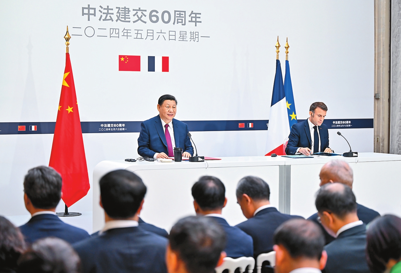 新华社巴黎5月6日电(记者 刘华 郝薇薇) 当地时间5月6日下午,国家主席习近平在巴黎爱丽舍宫同法国总统马克龙会谈后共同会见记者。
