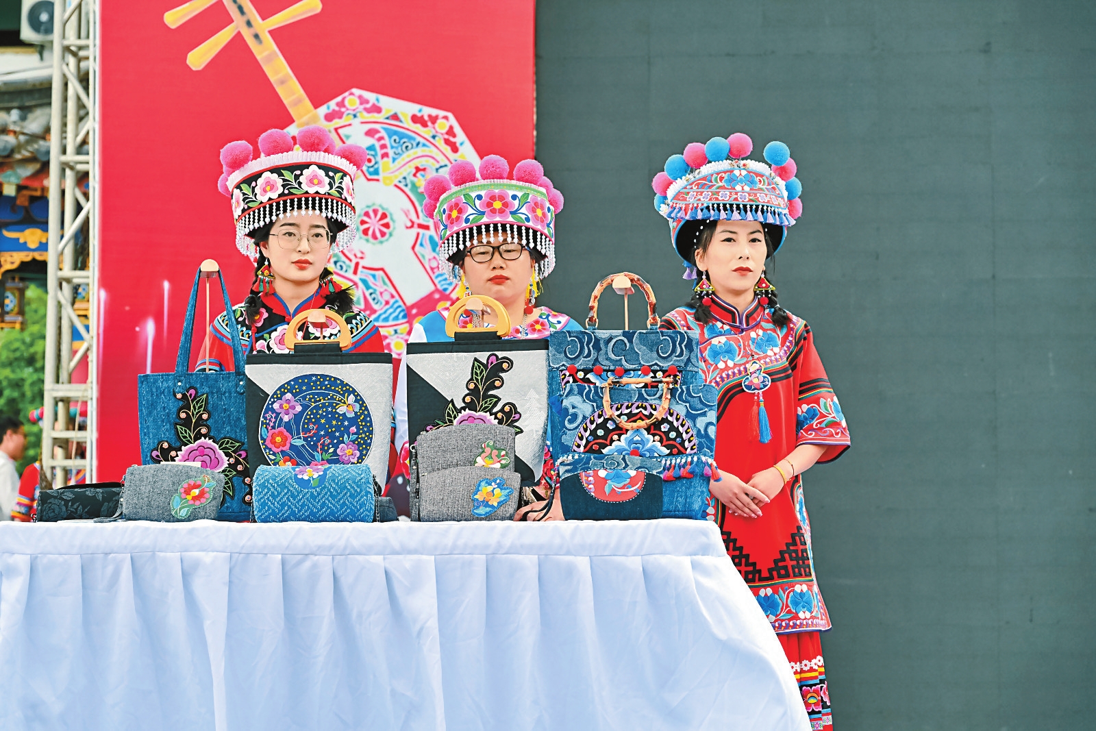5月6日,在牟定县“梦回千年·牵手时尚”彝族刺绣创意设计展示决赛上,来自县内外的彝族刺绣从业者及爱好者依次上台,现场展示数十组彝绣作品,并对作品创作理念、配色、针法等情况作介绍。本次大赛共有来自县内外的40余组绣娘参赛,经过初赛有20组作品进入决赛,最终评选出一等奖1名、二等奖3名、三等奖6名、优秀奖10名、最佳创意设计师10名。