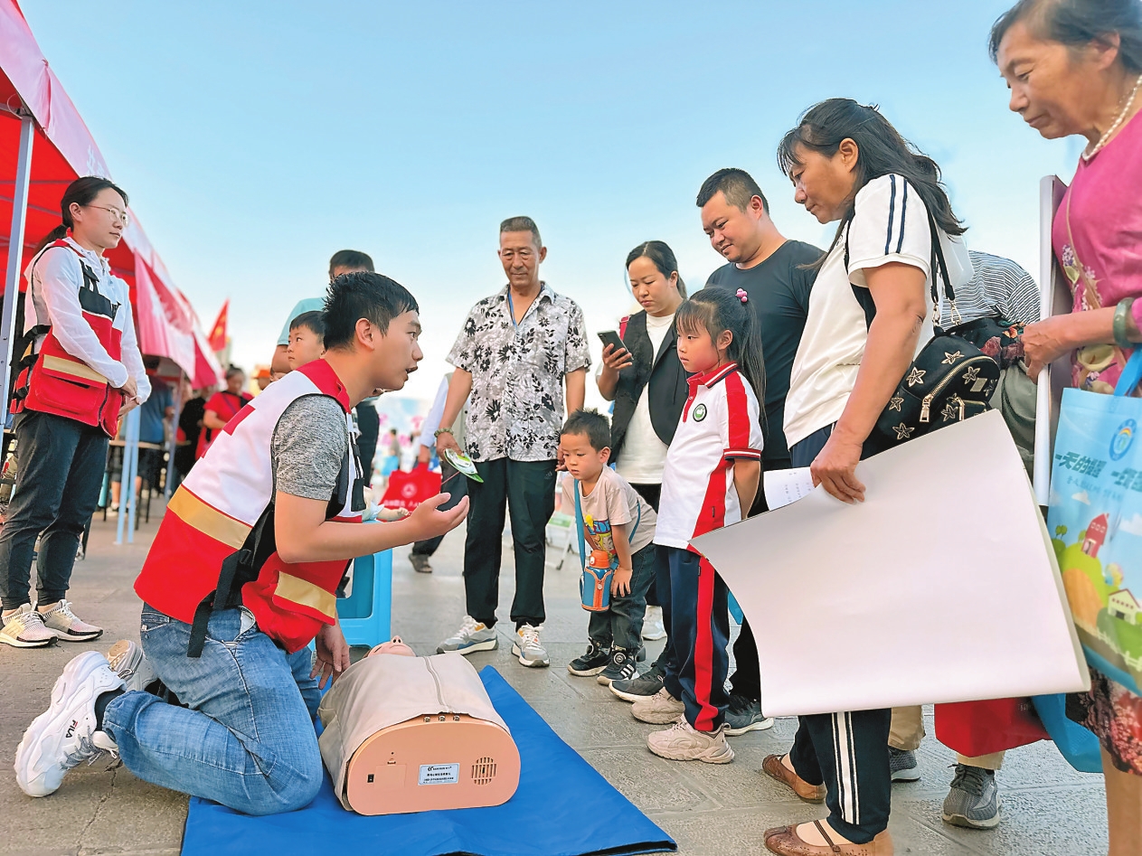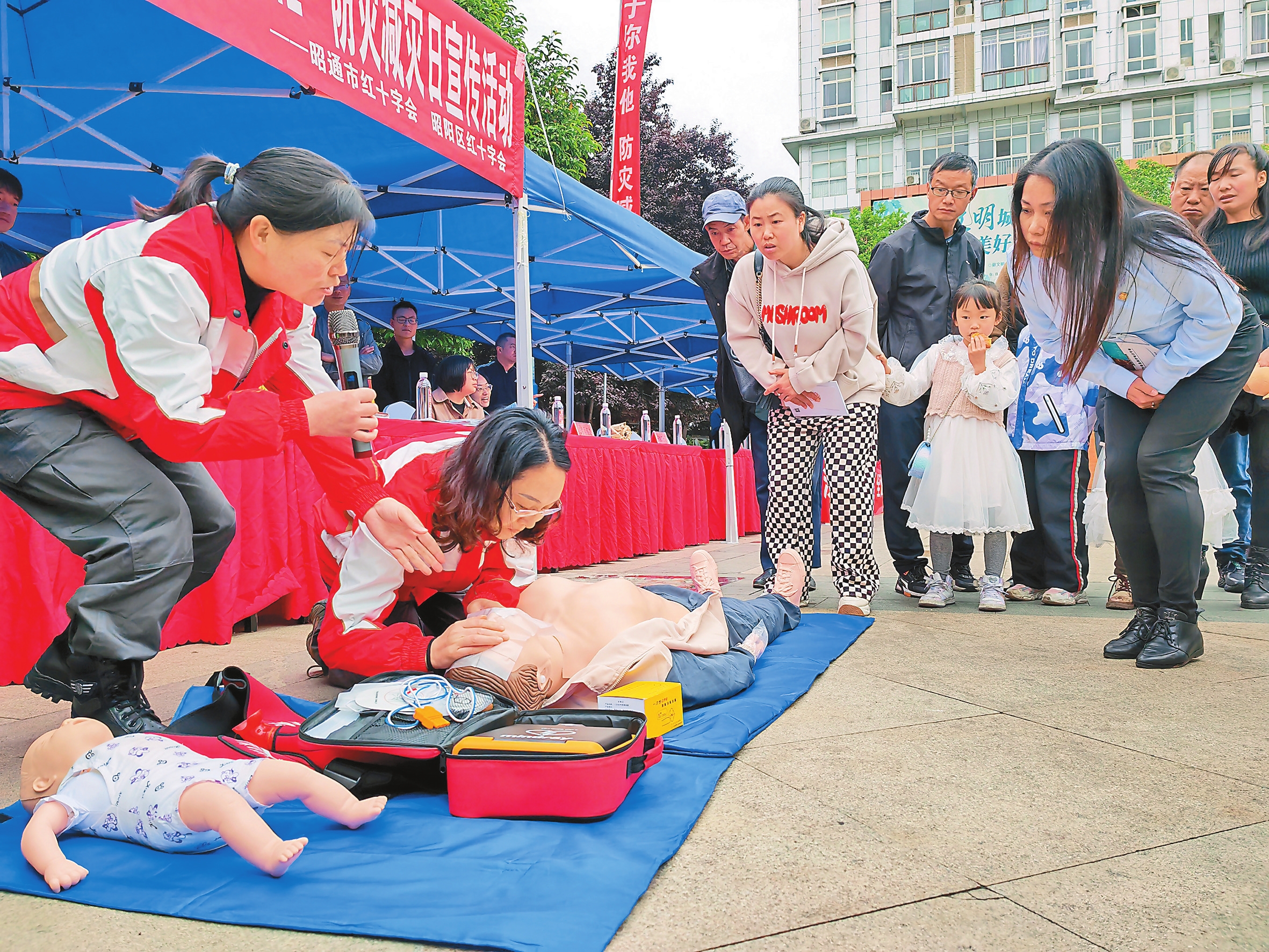 活动现场,主办方采取悬挂标语、发放宣传册、印发科普读物、张贴宣传海报、专题展览、播放专题片等方式,宣传普及防灾减灾知识,提升市民避险自救能力。市防震减灾局宣传普及避震逃生、自救互救、识别地震谣言等知识,昭通市红十字会志愿者现场演示心肺复苏应急救护技能,昭通消防现场展示应急救援装备器材,并演示灭火器材使用方法,吸引了广大市民参与学习体验。