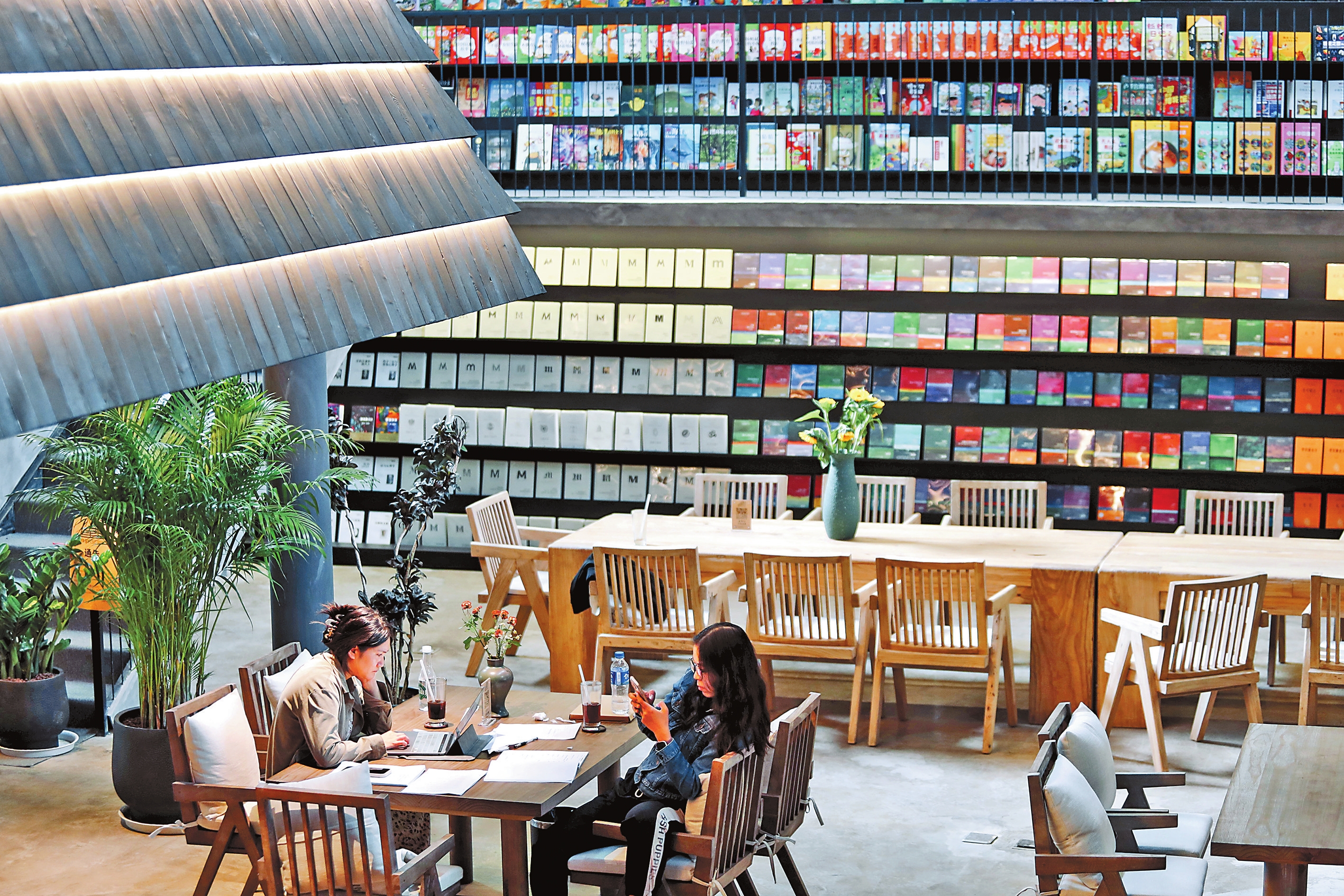 昆明市云纺蓄电池厂文创园由老厂房升级改造而成,园内业态集创意、旅游、文化、广告、艺术于一体,成为充满艺术气息的人文社区。园内的“接梯空间”里,一面高达12米的巨大书墙陈列着文学、艺术等各类书籍,吸引了众多市民和游客。“接梯空间”将浓厚的工业气息与文化书香相结合,错落的空间为读者营造出优质阅读环境。见习记者 高吴双 摄