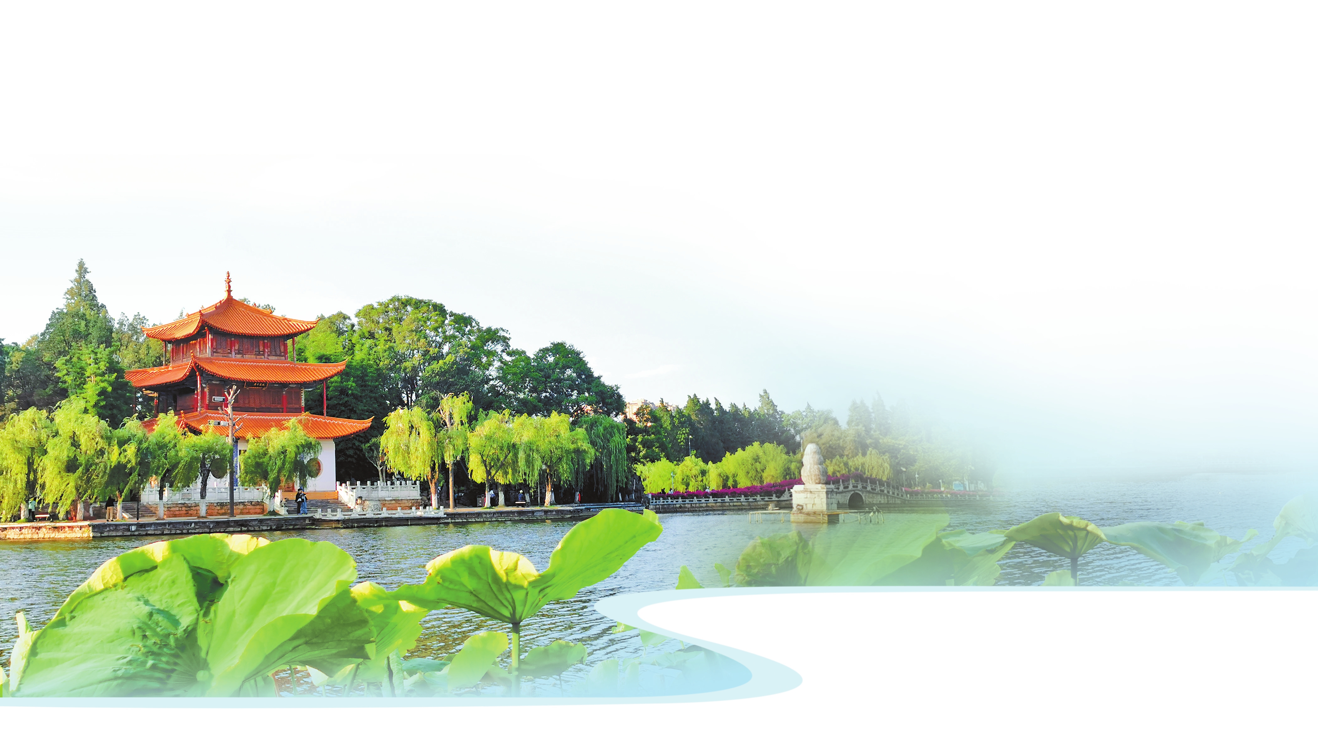 坐落于昆明西郊滇池之滨的大观公园,其中园林初辟于明代,因孙髯翁所题长联而名扬天下的大观楼初建于清康熙三十五年(1696年),是我国历史文化名楼。原楼前悬挂的孙髯翁长联为昆明名士陆树堂用行书书写刊刻,至清咸丰七年(1857年)毁于兵燹。现存三层楼宇系清同治五年(1866年)所建,而今悬挂的长联则是清光绪十四年(1888年)由云南剑川白族名士赵藩先生重书。