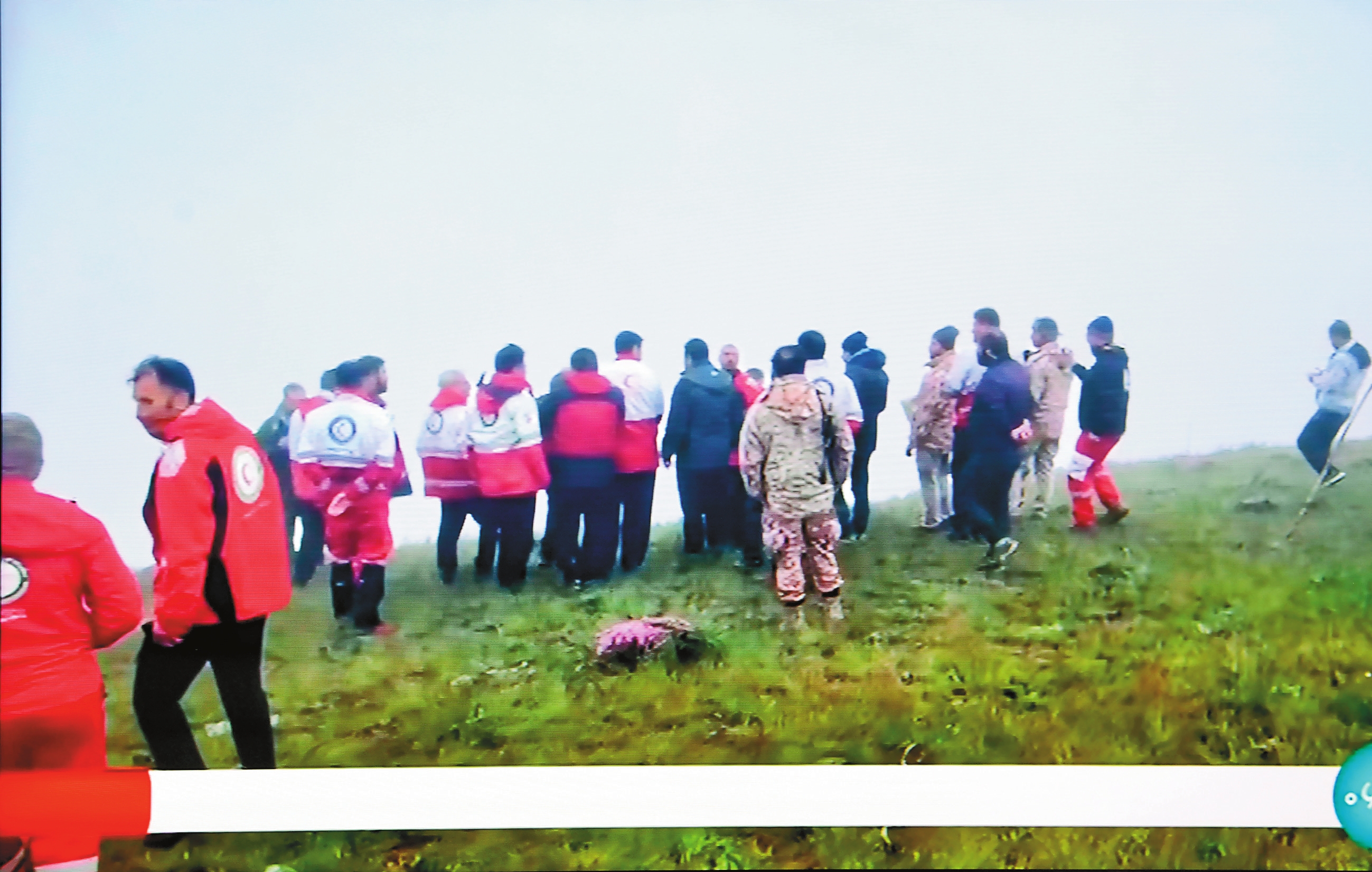 图为5月20日拍摄的伊朗国家电视台播放的救援人员抵达事故现场的画面。