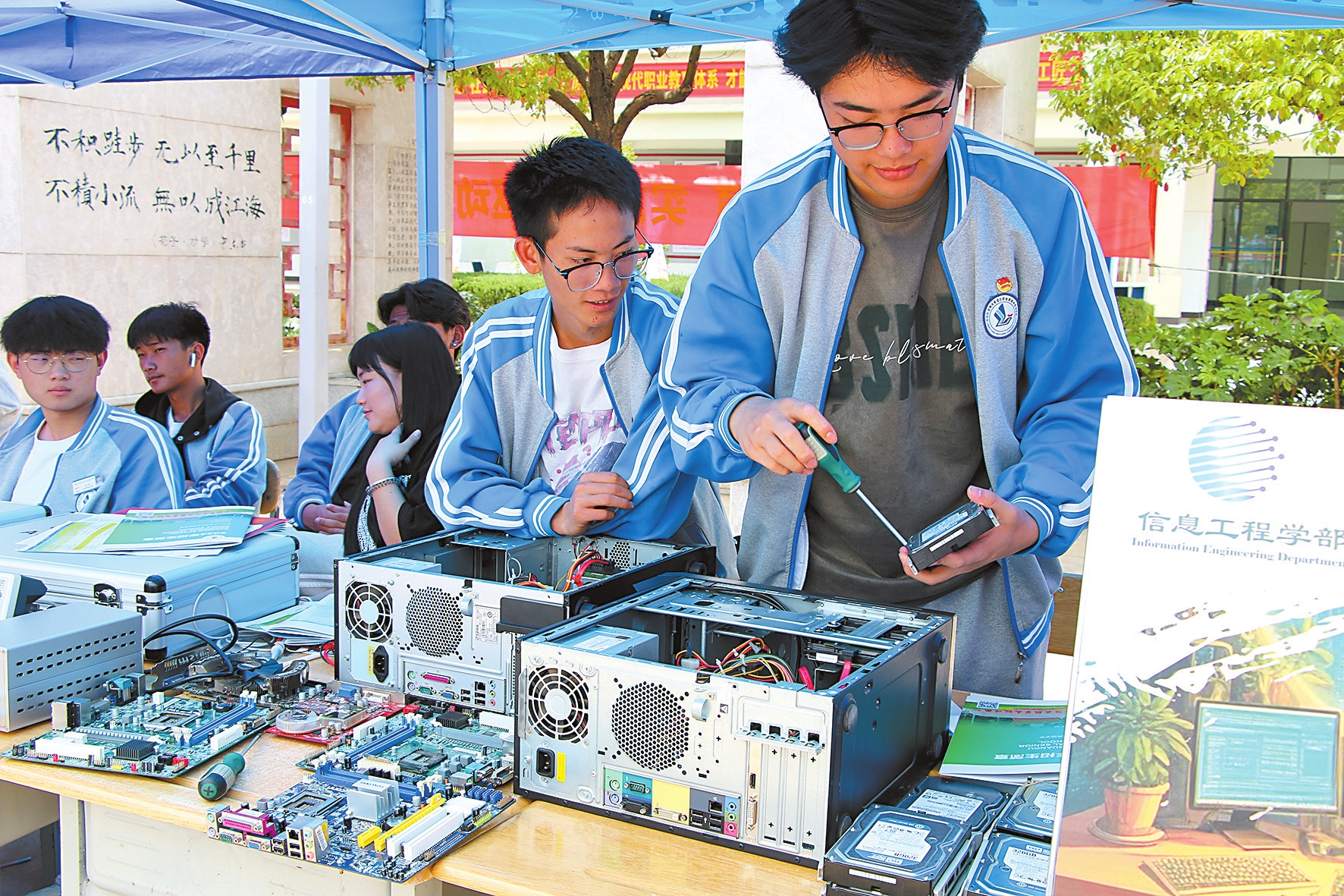 “我们倾力培养学生,让他们都有一技在手,成为对社会有用的人才。”官渡区职业高级中学党总支书记张毕祥介绍,通过举办职业教育活动周,充分展示学校职业教育教学改革、促进学生全面发展等方面的成效,深入开展校企共建,推动产学研用一体化发展。职业教育活动周设计了8个主题内容,汽车工程学部、信息工程学部、现代服务学部、综合高中学部选出具有专业优势、特色的教育教学成果和社团优秀作品予以展示;车身修复、动漫摄影、计算机维修组装、美容美发、健身体验、模具堆码、咖啡制作、手部按摩、茶艺传承等活动,各具特色。