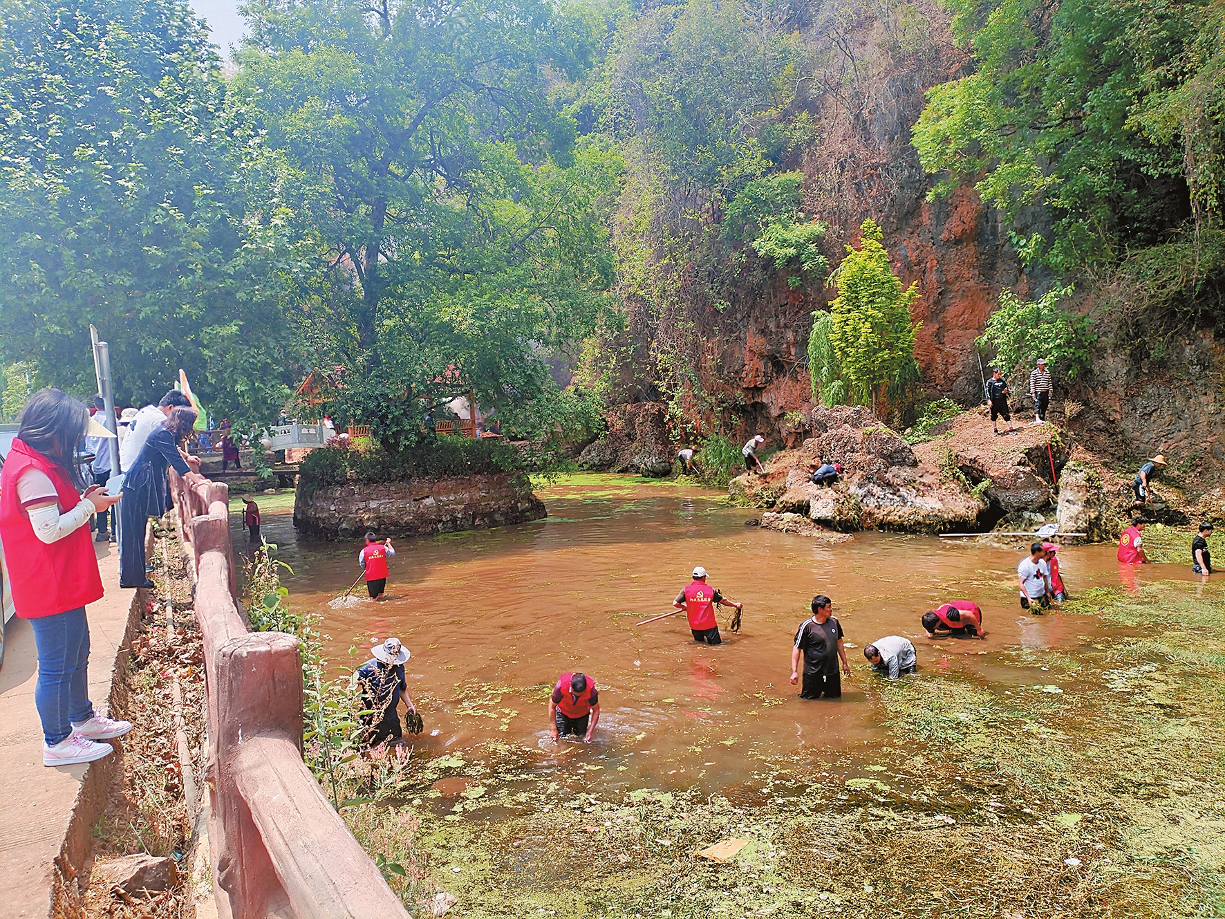 “村外就闻笑声至,又是一年三月三。春风夜放花千树、迫使龙潭换新装。”近日,寻甸回族彝族自治县柯渡镇凤鸣村又迎来了一年一度相约共谋村内事的时候,那就是——集体清掏大龙潭。