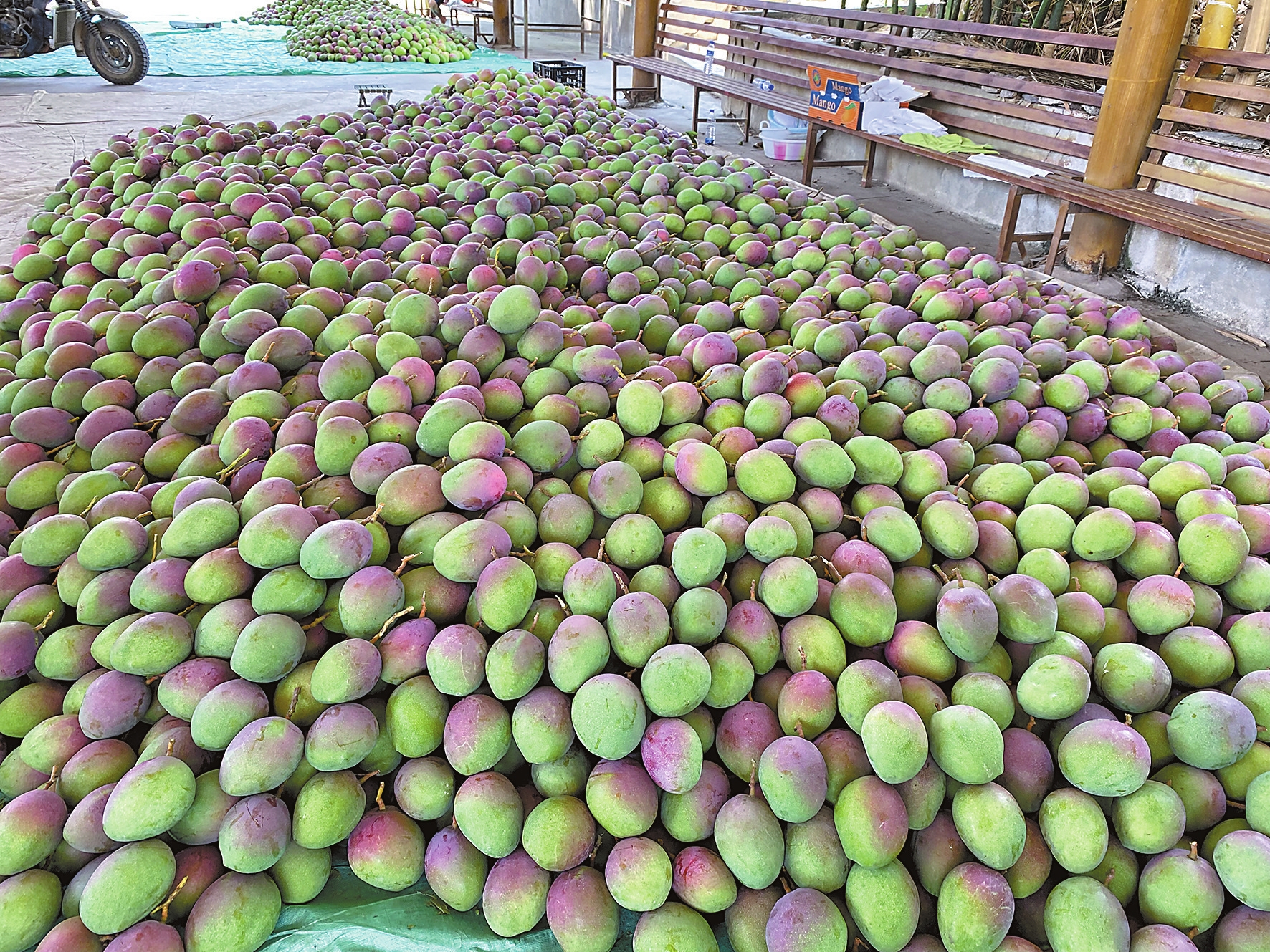 “今年天气比较热,加上干旱,芒果产量减少,但我们的芒果上市早,口感也可以。”果农白东今年种了10多亩芒果,虽然挂果量比往年有所减少,但在他的精心照料下,果子的品质依旧得到了保证,价格和往年相比不相上下。