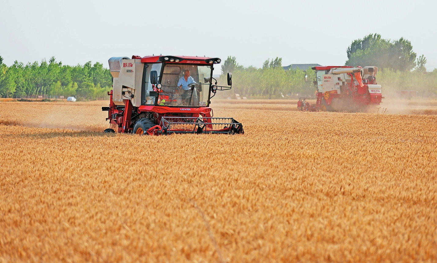 5月27日,农机手在山东省临沂市郯城县郯城街道三井村田间收割小麦。据农业农村部消息,截至5月27日17时,各地已收冬小麦6000多万亩,日机收面积连续4天超过400万亩,全国“三夏”大规模小麦机收全面展开。
