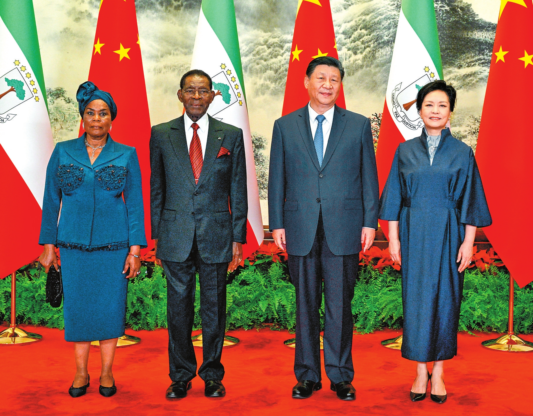 习近平指出,中国同赤道几内亚是肝胆相照的好朋友、好伙伴,高水平政治互信是两国关系的最鲜明特征。建交半个多世纪以来,双方始终守望相助、风雨同舟,在涉及彼此核心利益和重大关切问题上坚定相互支持,成为中国同非洲国家真诚友好、携手发展的生动写照。新形势下,巩固好、发展好中国同赤道几内亚关系符合两国和两国人民的根本利益和共同期待。中方坚定支持赤道几内亚维护国家主权独立、反对外来干涉、自主探索本国发展道路,愿同赤道几内亚以提升全面战略合作伙伴关系为契机,进一步密切各领域、各层级友好往来,深入开展改革发展、脱贫攻坚等领域经验交流,为两国传统友好注入持久动力。