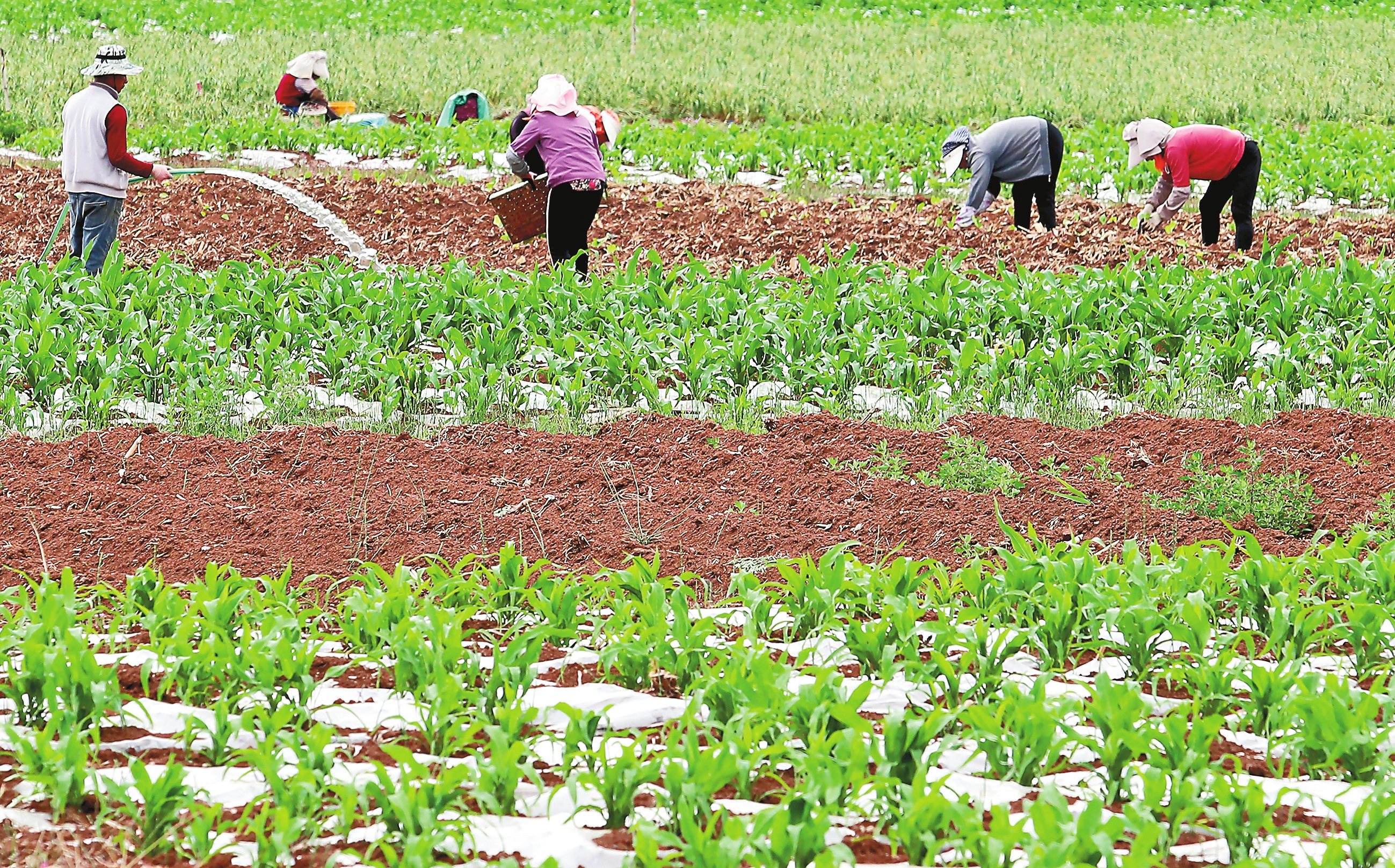 “三夏”时节,在玉龙纳西族自治县九河乡,农户忙碌在田间地头,进行田间管护。目前,丽江市正抢抓农时,全力推进夏收、夏种、夏管等各项工作。本报记者 杨峥 摄