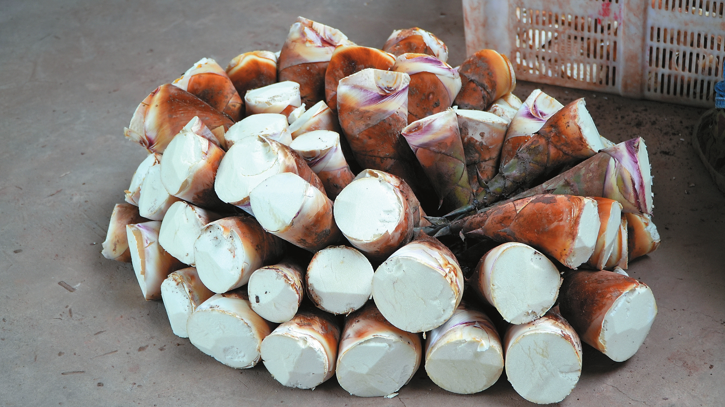 普洱气候温润、降雨丰沛,非常适合竹子生长。特别是甜龙竹,枝干壮硕,鲜笋肉质脆嫩、鲜甜可口、产量较高;且因其低脂肪、高蛋白,富含膳食纤维,尤其适合鲜食。近年来随着市场需求不断增加,产品供不应求,甜龙竹成了农民增收致富的“摇钱树”。“这几年我陆续种植甜龙竹110亩,最高日产鲜笋1吨左右。可以说大山就是我们的‘银行’。”在江城哈尼族彝族自治县整董镇整董村麻栗树小组,甜龙竹种植大户石风青正忙着给新出土的鲜笋称重,准备发往思茅。