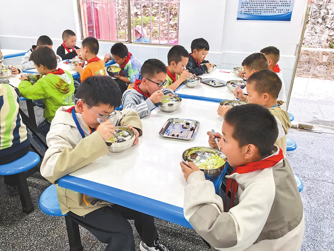 “我们设置了营养餐食材单独库房,食材标注生产日期、进货日期、保质期、供应商等信息,严格按照先进先出的要求出库,加强库存盘点,防止出现过期食材。所有食材严格按照荤素、生熟区分摆放。在洗消保洁方面,食堂设立餐具专用洗消区,各类餐具分类分架摆放,每日两次消毒。”墨红中心小学校长王丽芬介绍。