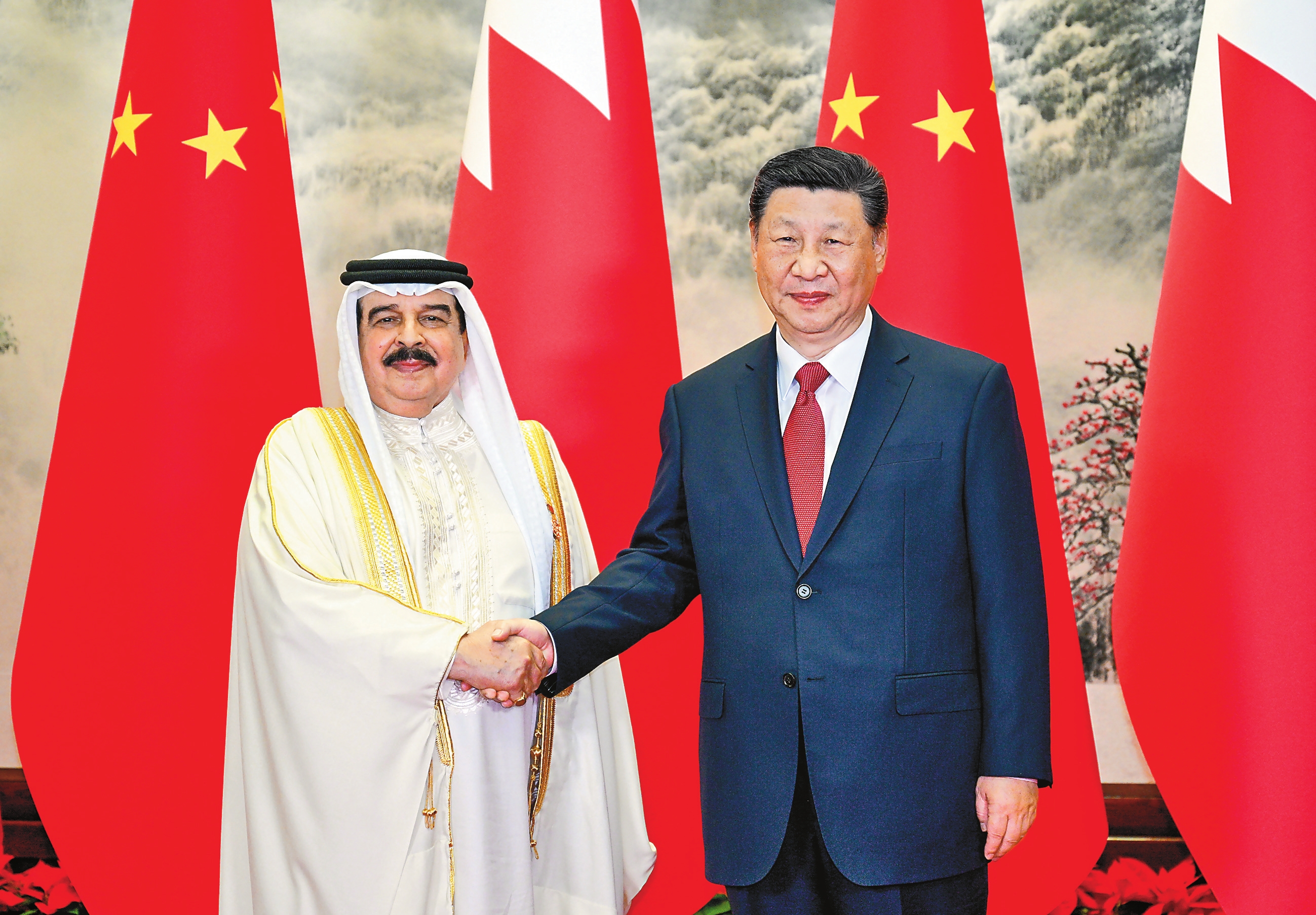 哈马德表示,中国是伟大的国家,为巴林国家建设提供了大量支持,巴方深表感谢。巴方希望以建立全面战略伙伴关系为契机,对接两国发展战略,密切各领域务实合作,助力巴林实现多元化发展。巴方高度赞赏并完全赞同中方秉持的高尚价值理念和理性智慧的政策主张。中国发展好了,其他发展中国家才能发展好,世界多极化进程才能持续推进。巴方坚信,中国必将实现中华民族伟大复兴,并为世界和平繁荣作出更大贡献。巴方恪守一个中国原则,支持中国实现和平统一。愿同中方密切多边协作,更好保障各国人民享有平等的生存权和发展权。巴方愿同中方一道,推动尽早达成海合会-中国自由贸易协定,发扬阿中友好精神,携手构建面向新时代的阿中命运共同体。