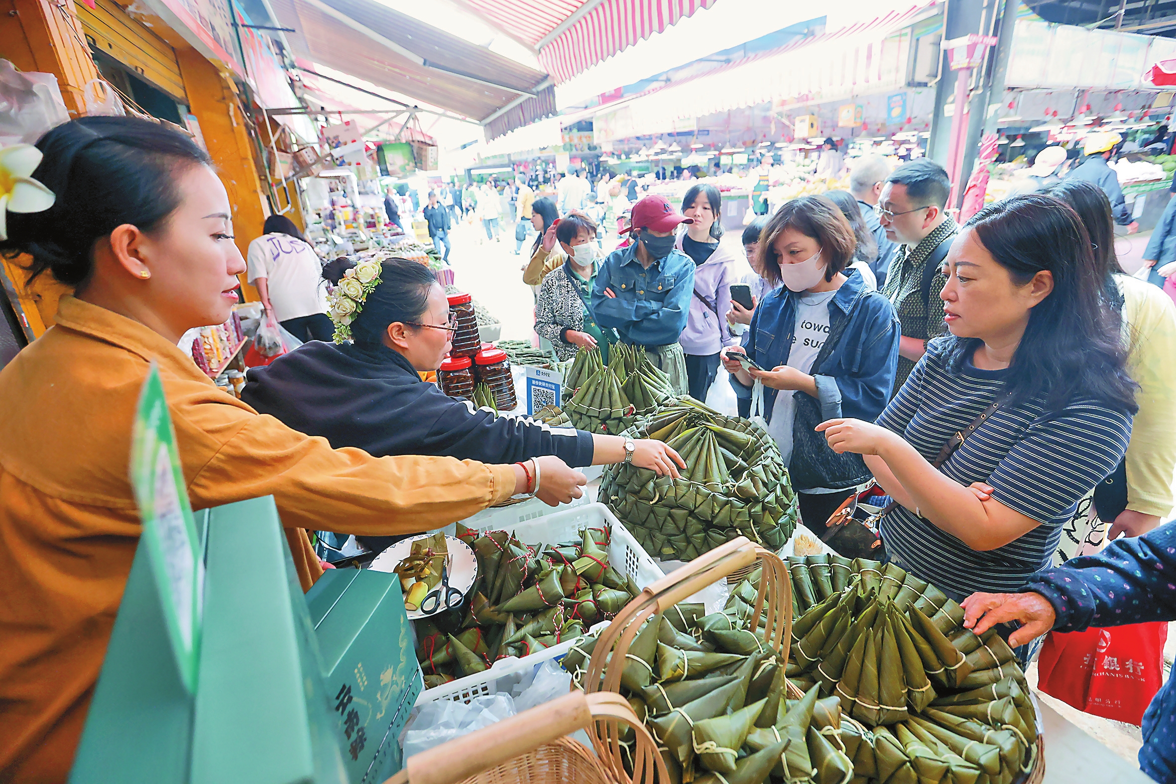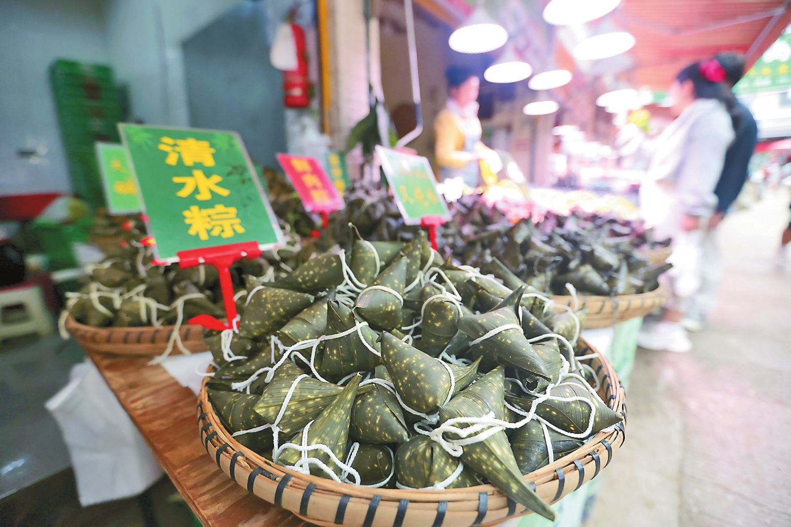 端午临近,昆明各大农贸市场、商超内的粽子已“抢鲜”上市。在大观篆新农贸市场,西双版纳小香粽、大理土碱粽、叉烧粽、八宝粽等特色粽子吸引了不少市民前来选购。