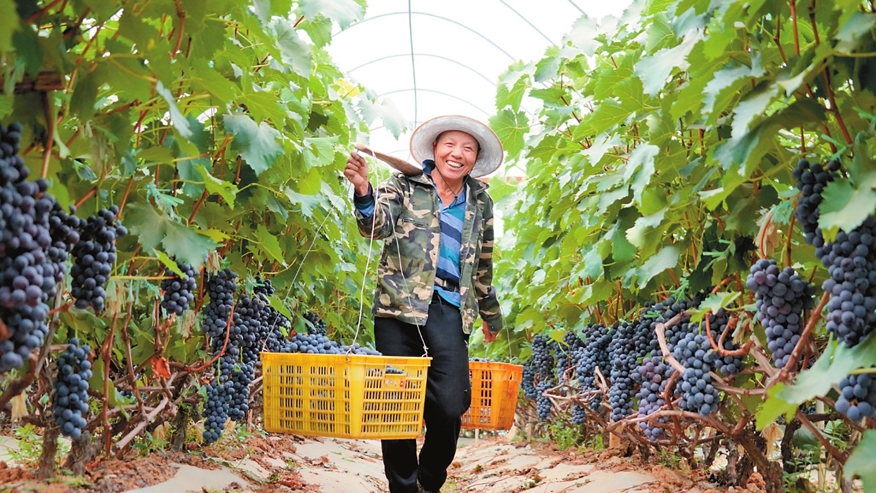葡萄成熟后,采摘、分拣、包装、运输,每个环节都需要工人操作,这也给当地群众提供了务工的机会。采摘工人赵永琼说:“我家就是本地的,在这里采摘每天有100多元的收入。这里离家近,回家也比较方便。”
