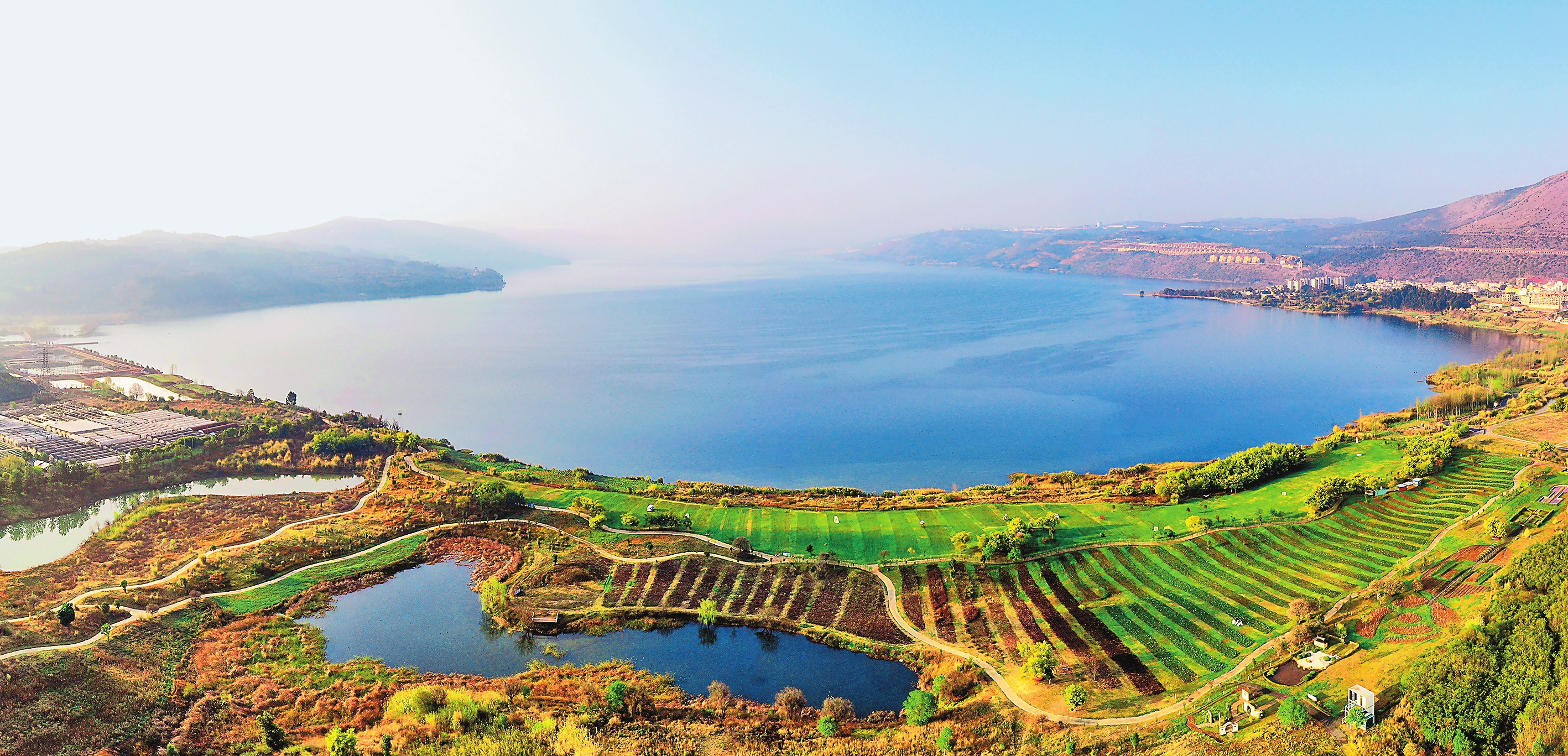 6月的阳宗海浩渺如镜,岸上游人如织。近年来,阳宗海保护治理成效显著,2022年、2023年,阳宗海平均水质达Ⅱ类,创近年来最好水平,总体呈现向好态势。本报记者 陈飞 摄