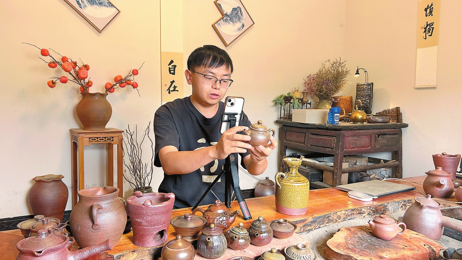 2022年,茶嘉龙抓住围炉煮茶的热潮,推出各种型号的土窑围炉、奶茶罐等,受到商家和粉丝的喜爱,秋冬季月销售额超过30万元。“通过非遗产品融入人们的生活,让非遗技艺得到更好的宣传推广,我希望把‘龙窑柴烧陶’这项传统技艺传承下去。”茶嘉龙说,目前,他的制作基地季节性用工10余人,生产的产品远销北京、广东、福建等地,年产值稳定在100万元左右。“此外,我还带领其他非遗传承人和从业者通过直播销售产品,进一步扩大土锅、土陶的知名度。”