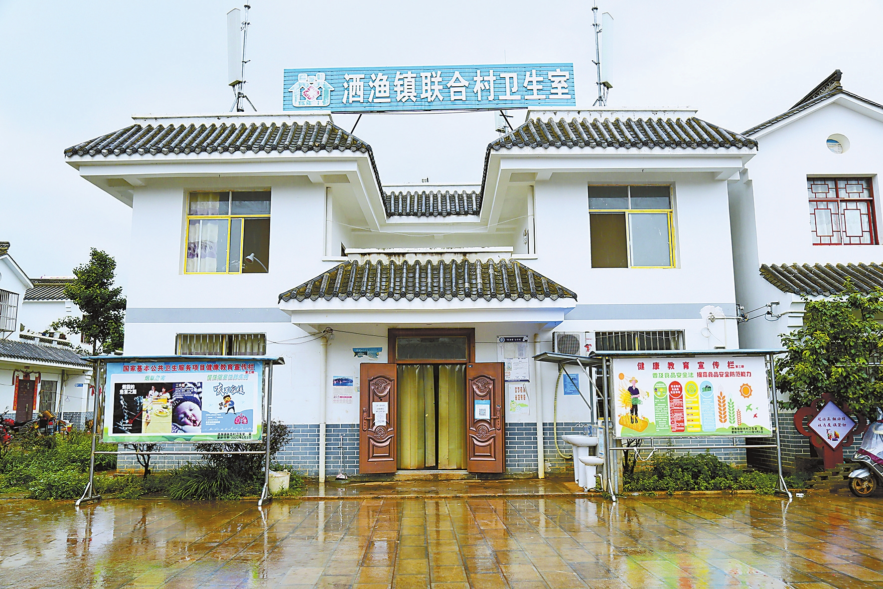从联合村向北10公里,就抵达洒渔镇中心卫生院。门诊、住院、妇保、公卫4栋大楼内科室规划合理,救护车、DR等设施设备一应俱全。通过脱贫攻坚、东西部协作等工作接续发力,洒渔镇卫生院硬件设施和服务能力实现大提升,并于2021年创建为国家推荐标准乡镇卫生院。