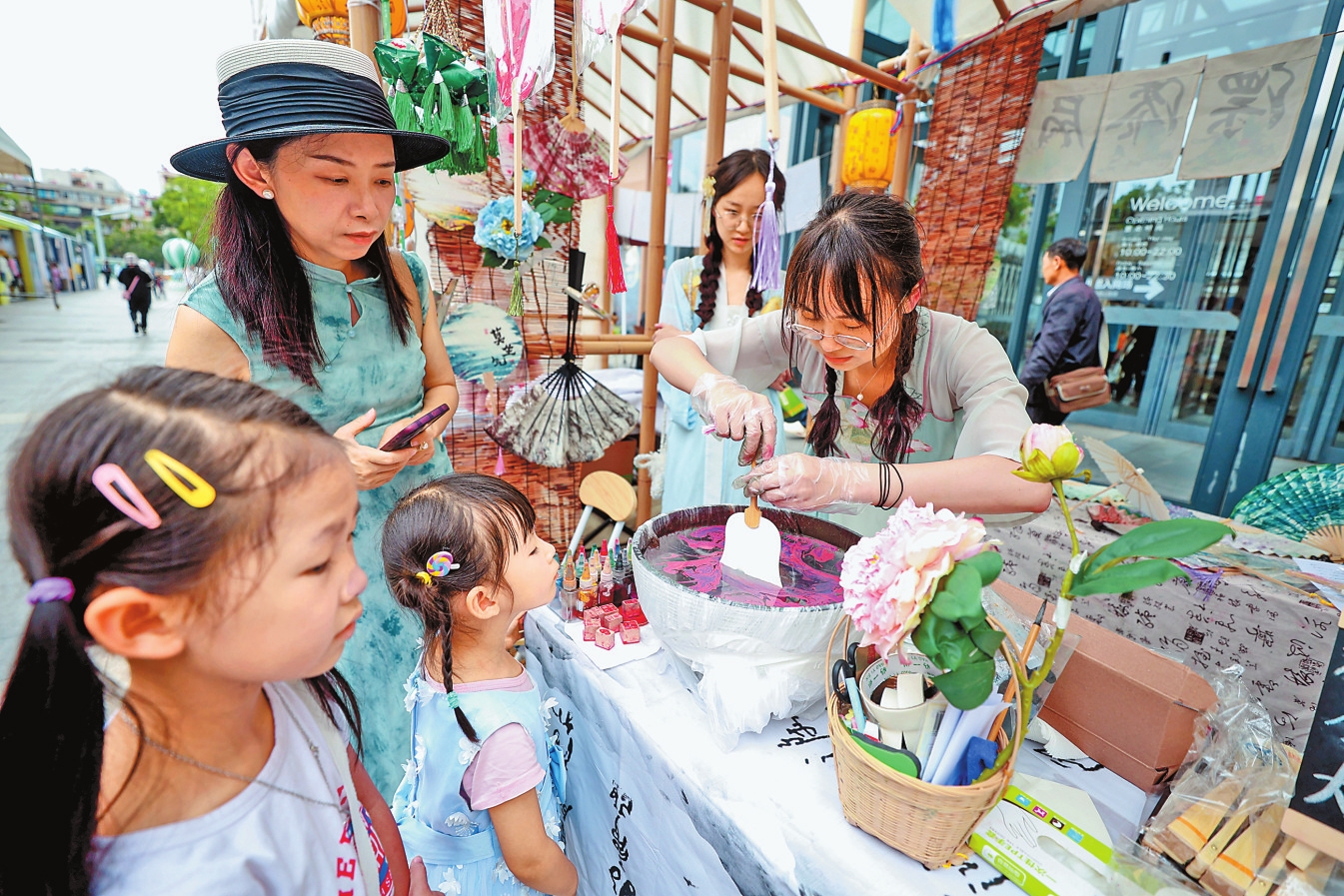 在丽江古城,2024年“和美古城大研篇·浓情端午”文化系列活动举行,大家品美食、包粽子、做香包、编五彩线,“跟着活动探民俗”吸引了众多市民和游客体验,受到一致好评。