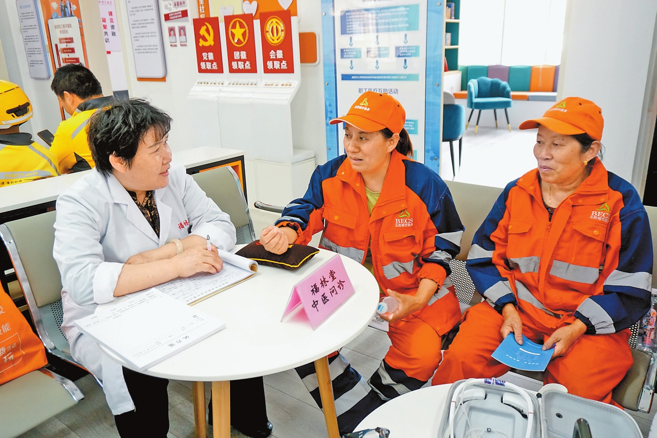 永宁里社区总工会主席禹姝热情招呼大家说:“拿瓶水,里面坐,社区医生在义诊。”