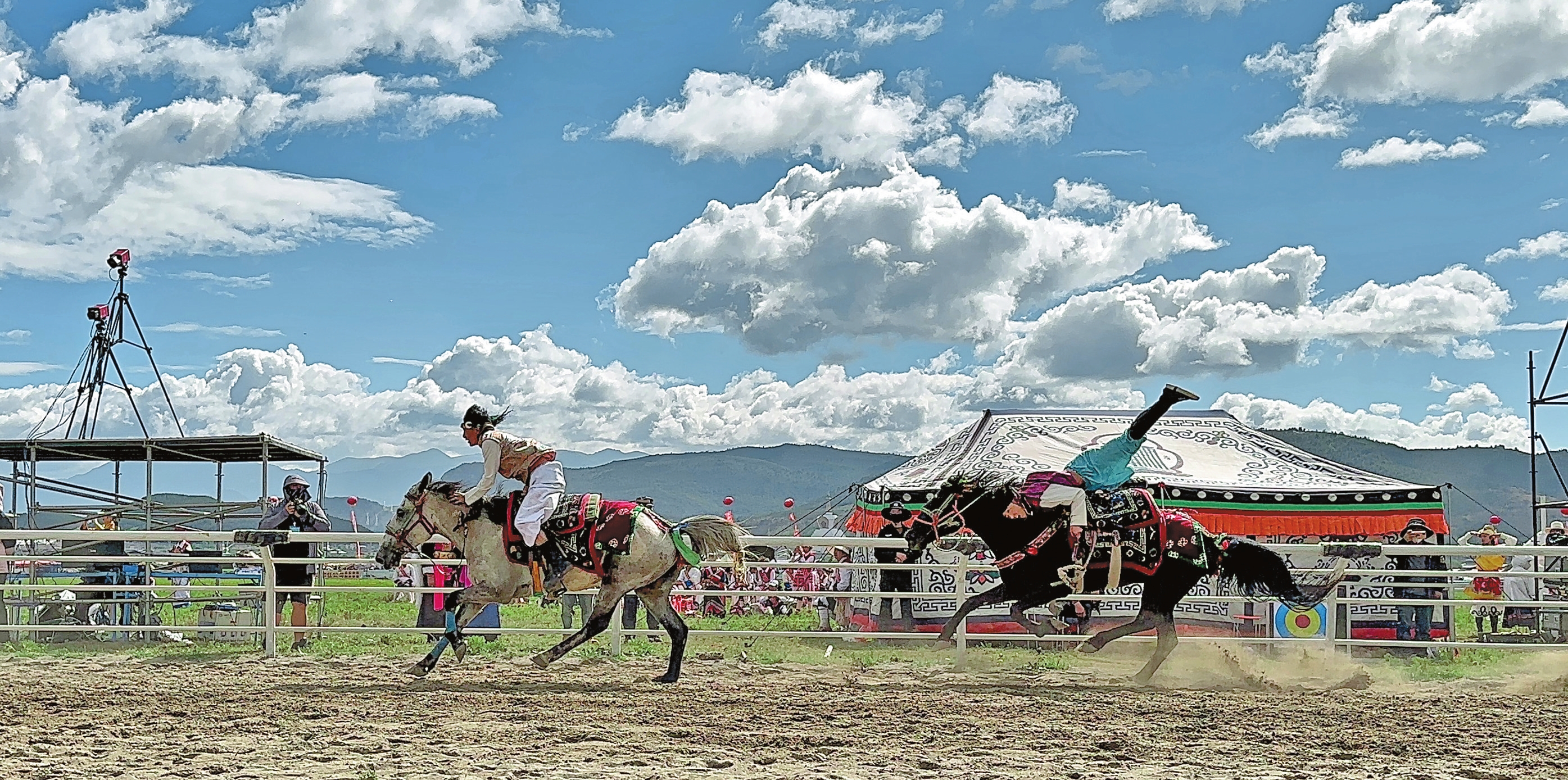 6月10日,2024年迪庆·香格里拉赛马会在迪庆藏族自治州香格里拉市建塘镇尼史村仙人洞草原开幕,各族群众纷纷汇聚于此,在赛马场周边搭起帐篷,为赛马健儿们呐喊助威。见习记者 贡秋次仁 摄