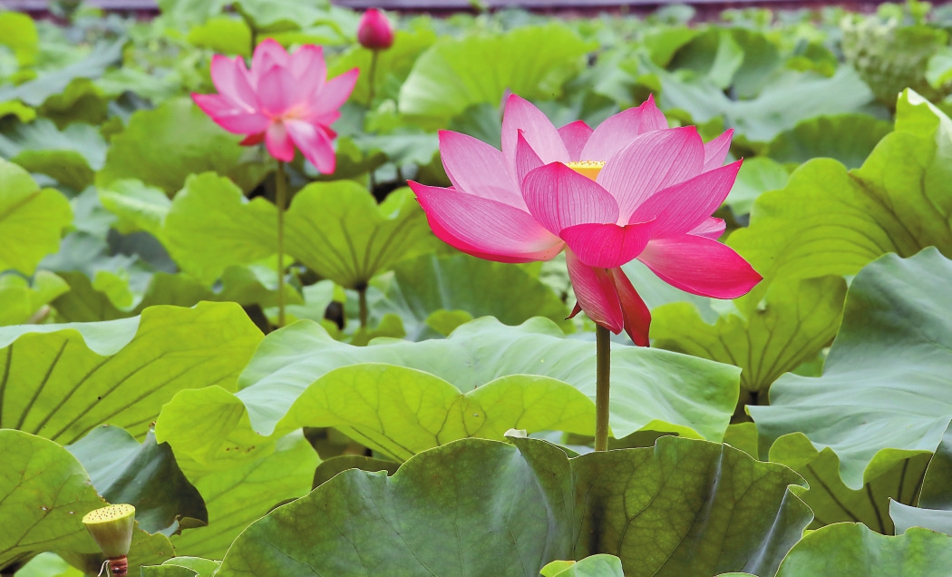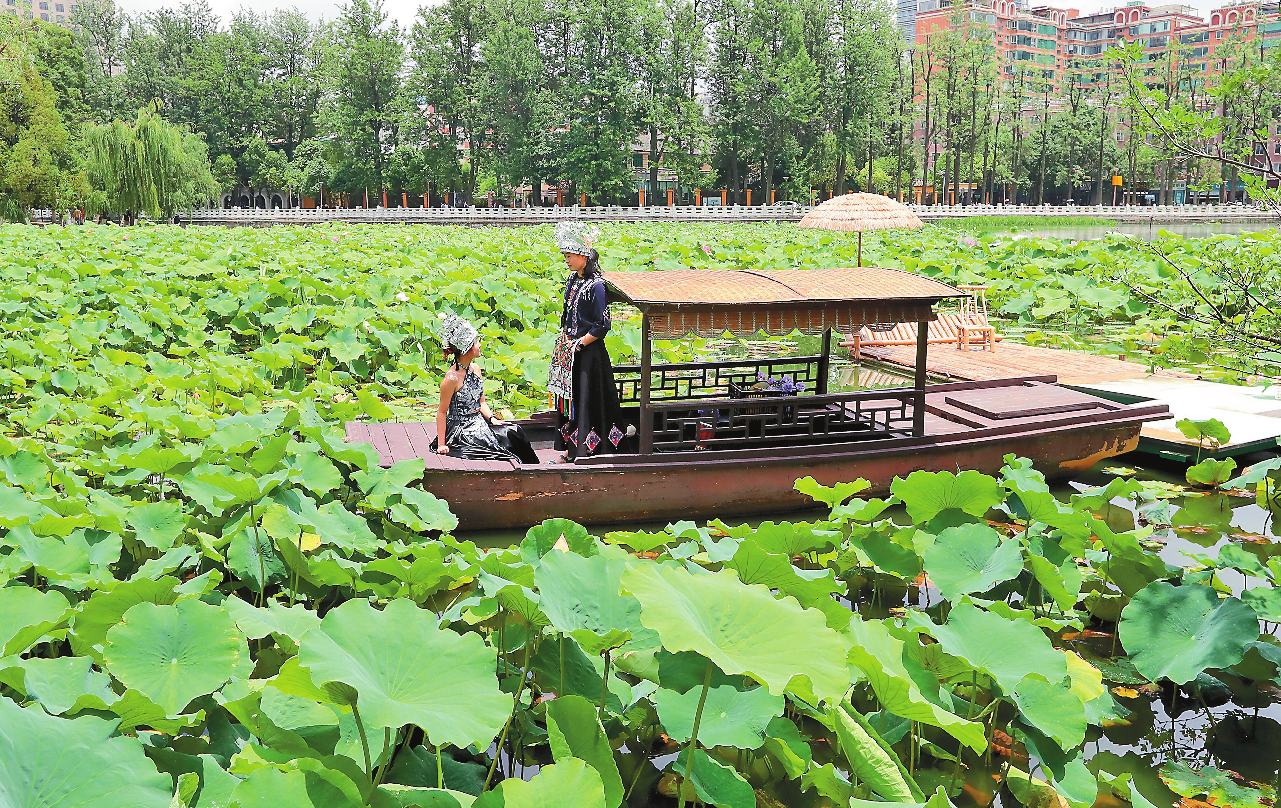 近日,昆明翠湖公园内的荷花竞相绽放,幽香扑鼻,令人心旷神怡。众多市民游客驻足观赏,打卡拍照,在诗情画意中享受夏日清凉。本报记者 杨峥 摄