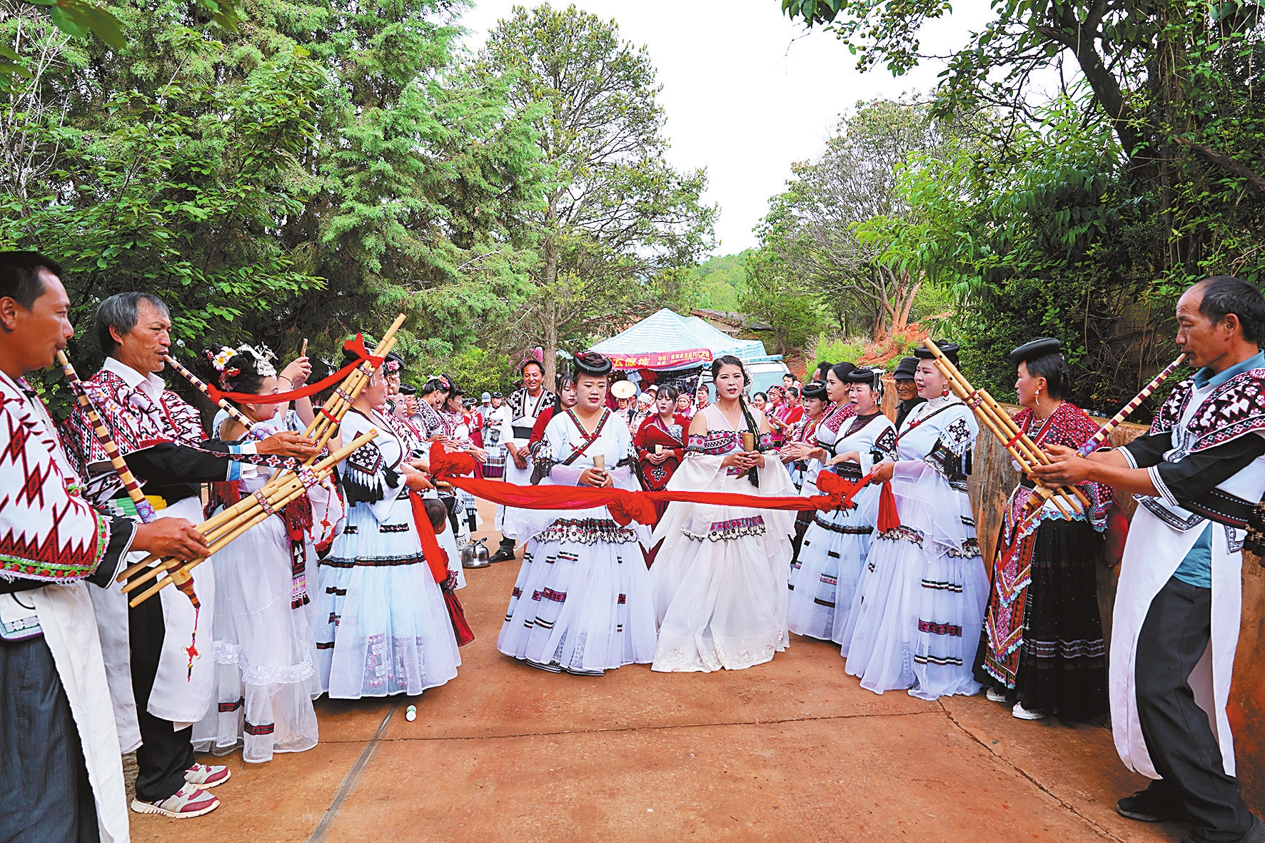 今年的花山节以“烂漫花山、欢乐苗家”为主题。开幕式上,新时代文明实践志愿者宣读“抵制高额彩礼 倡导文明婚俗”倡议书,呼吁大家共同抵制陈规陋习,坚决遏制高额彩礼之风,营造健康向上、积极文明的婚育新风。现场进行了体育项目吹枪、弩箭、打陀螺、弹弓等项目表演,表彰了松华街道基层公共文化服务先进工作者,并举行了高原植物种质保护与繁育基地(二期)等乡村振兴项目签约仪式。