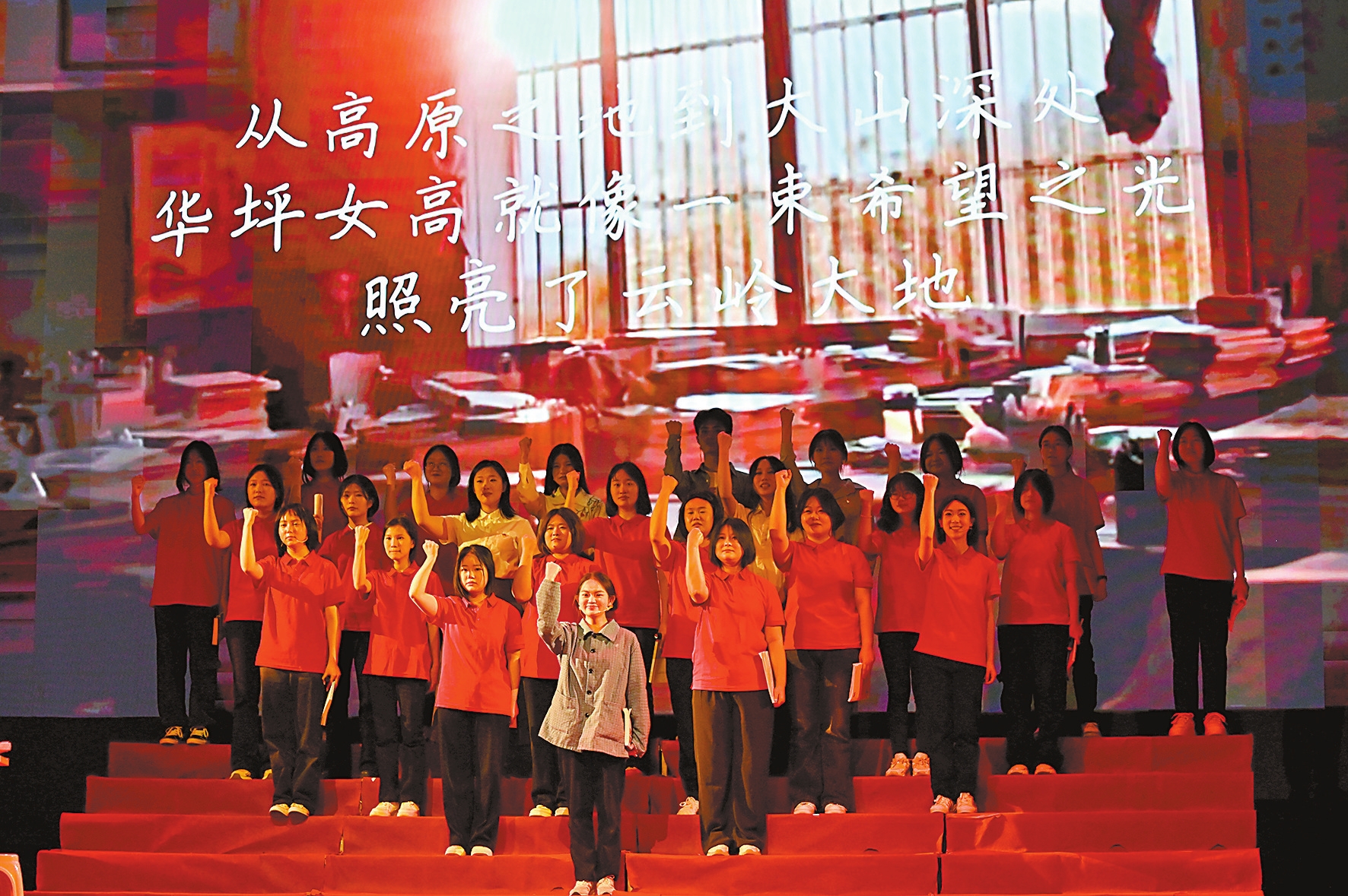 该校相关负责人表示,通过话剧《高山上的一枝梅》引导师生学习张桂梅老师的精神,懂得奋斗、懂得奉献,扎根基层,在平凡的小事中做出不平凡的事迹。