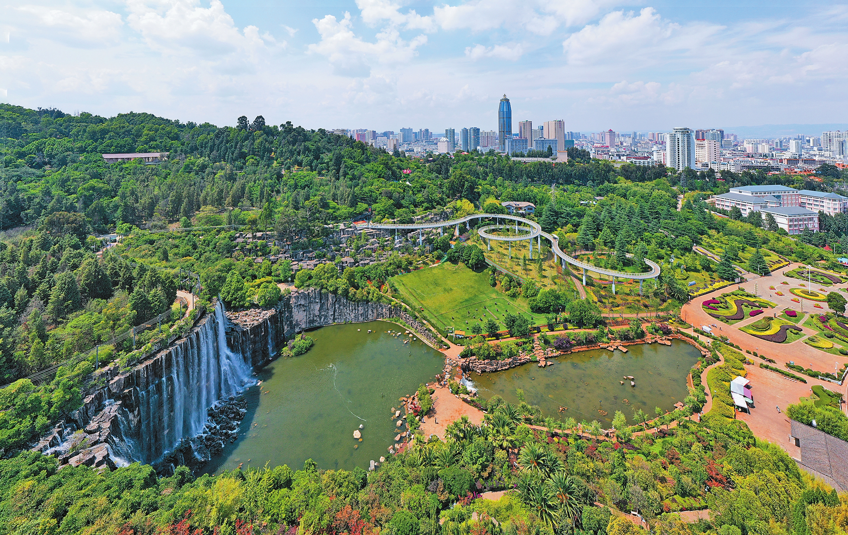 夏日,曲靖市麒麟区寥廓山河滨公园树绿林茂,登高远眺,山水美景尽收眼底。近年来,曲靖市以增绿提质为主线,以中心城市绿美建设为引领,聚焦路、地、廊、园、景5个重点,制定中心城市绿美城市建设实施方案,抓实抓细绿美城市建设,全面实施道路提质、盘活空地增绿、打造示范绿廊、公园绿地建设、景观提升改造5项行动,着力形成与云南副中心城市相匹配的山水绿地系统。