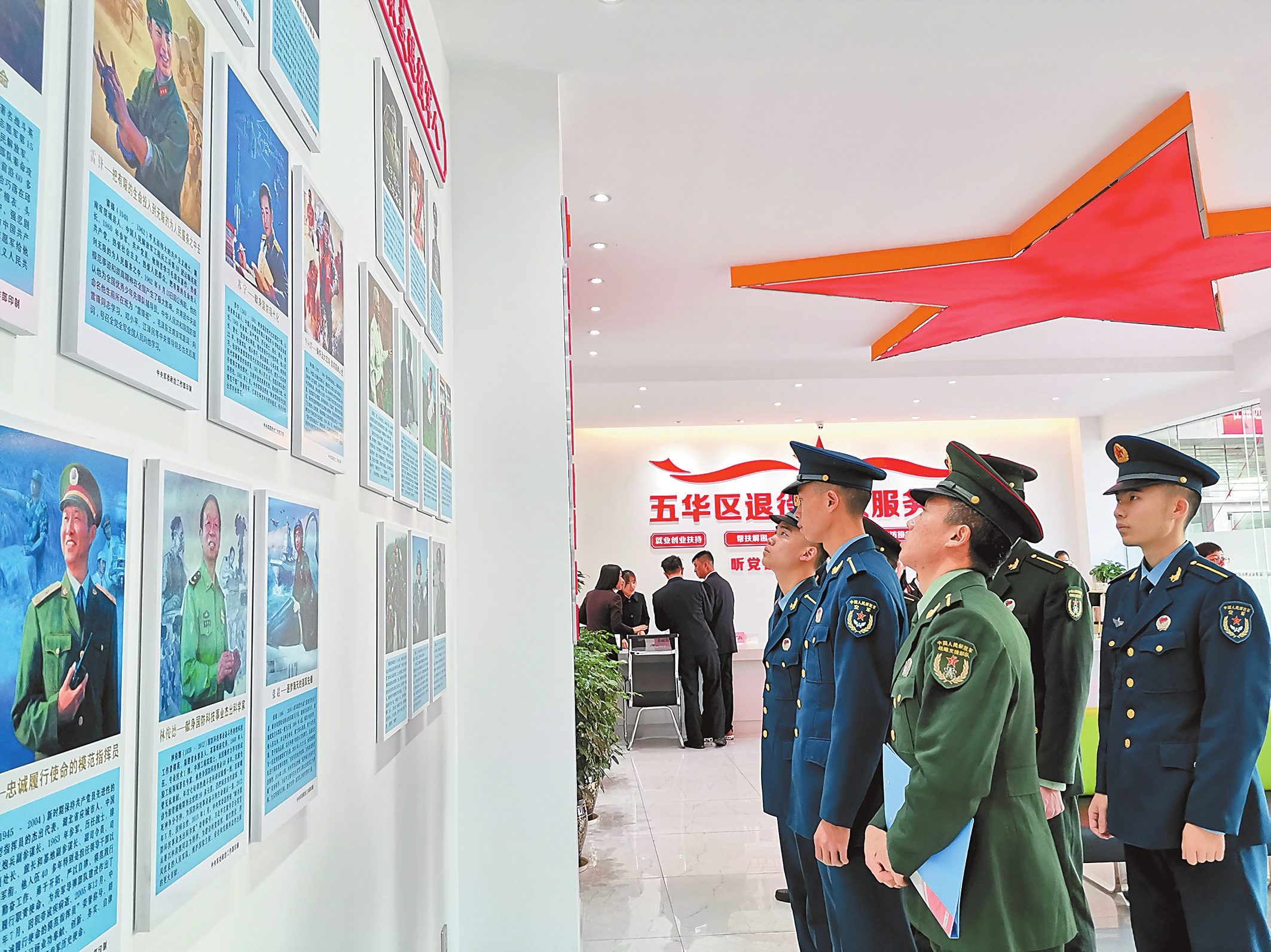 五华区退役军人服务中心主任向茂举介绍,为打破退役军人服务保障“单兵作战”带来的弊端,全区推动乡镇(街道)人武部与退役军人服务站合一,“军人之家”与退役军人服务站合一,征兵工作站、双拥工作站、涉军维权服务站与退役军人服务站“四站合一”,在街道、社区层面整合退役军人服务队伍和人武力量、公安力量、社会力量构建多位一体的管理服务模式,推动基层服务站实体化运行,畅通退役军人服务保障工作联动渠道,为退役军人提供从入伍、服役到退役、就业、优抚的全周期闭环服务。