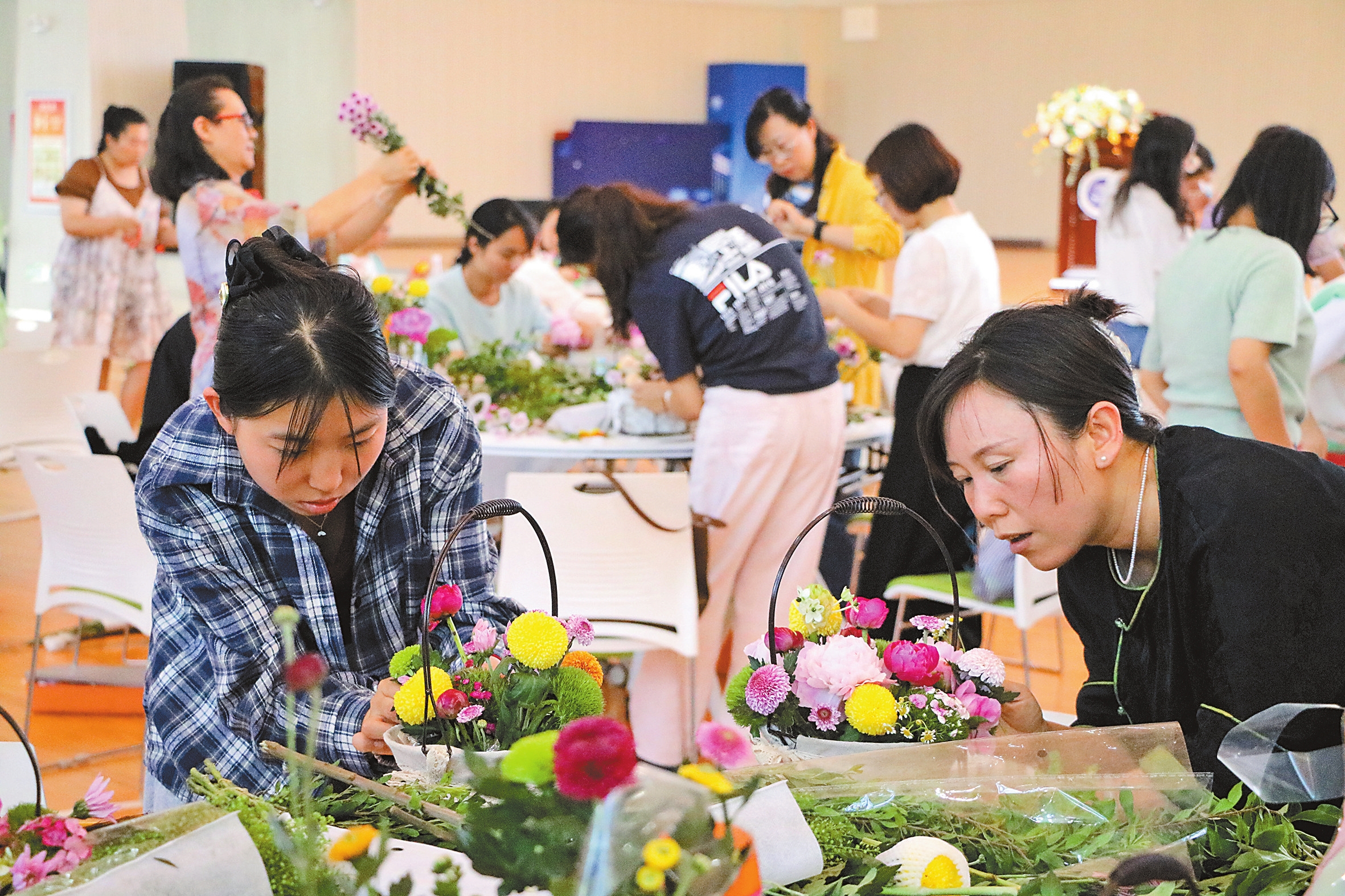 此次活动邀请国家一级插花花艺师、云南省高级考评员、云南省第一届“云岭技能大师”潘建材担任培训师,对昆明市的120名劳动教师进行花艺专业技能提升培训。活动现场,潘建材老师讲解了花艺简史、色彩搭配、花材种类等知识,并现场演示少儿花艺的基本技艺和制作过程,参训学员在轻松愉快的氛围中学习到了知识,提升了技能。