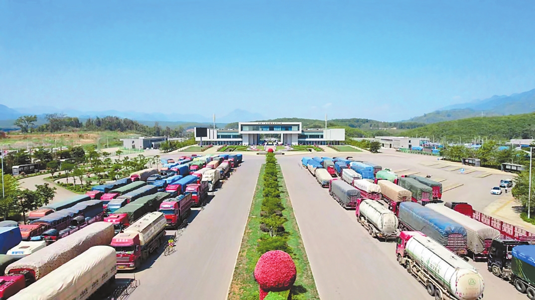 在镇康南伞口岸边民互市交易区,一辆辆满载着农特产品的货车正整齐有序地进行着海关业务办理流程。镇康县自2021年获批成为全省首批边民互市创新改革试点县以来,推动形成政府主导、合作社(互助组)牵头、边民为主体的新型边贸模式,促进边民增收,激活口岸发展动能,推动边民互市从通道经济向口岸经济不断迈进。2023年,镇康县边民互市贸易额达7.7亿元,带动村集体经济收益231万元、边民收益693万元。