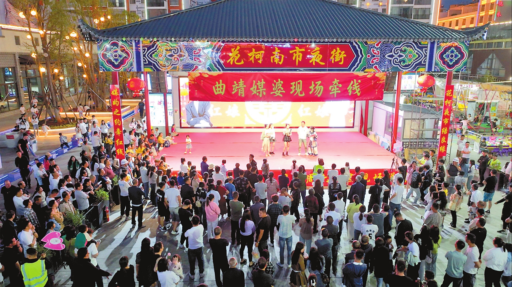麒麟区把优商营商护商作为城市党建的出发点和落脚点,大力推动“老建筑+新消费”“旧院里+新经济”等产业模式,让城中村和老旧厂房焕发出新气象。在商圈设置流动党群服务站,为商户提供代办、检证等服务,整合公共资源布局小哥驿站、暖心驿站等,畅通网购、外卖购销渠道,促进市场繁荣。积极引入社会组织参与承办商圈活动,不断植入地方文化元素,每周组织不同主题活动,为本地市民和到曲靖避暑的游客提供吃喝玩乐一条龙服务。