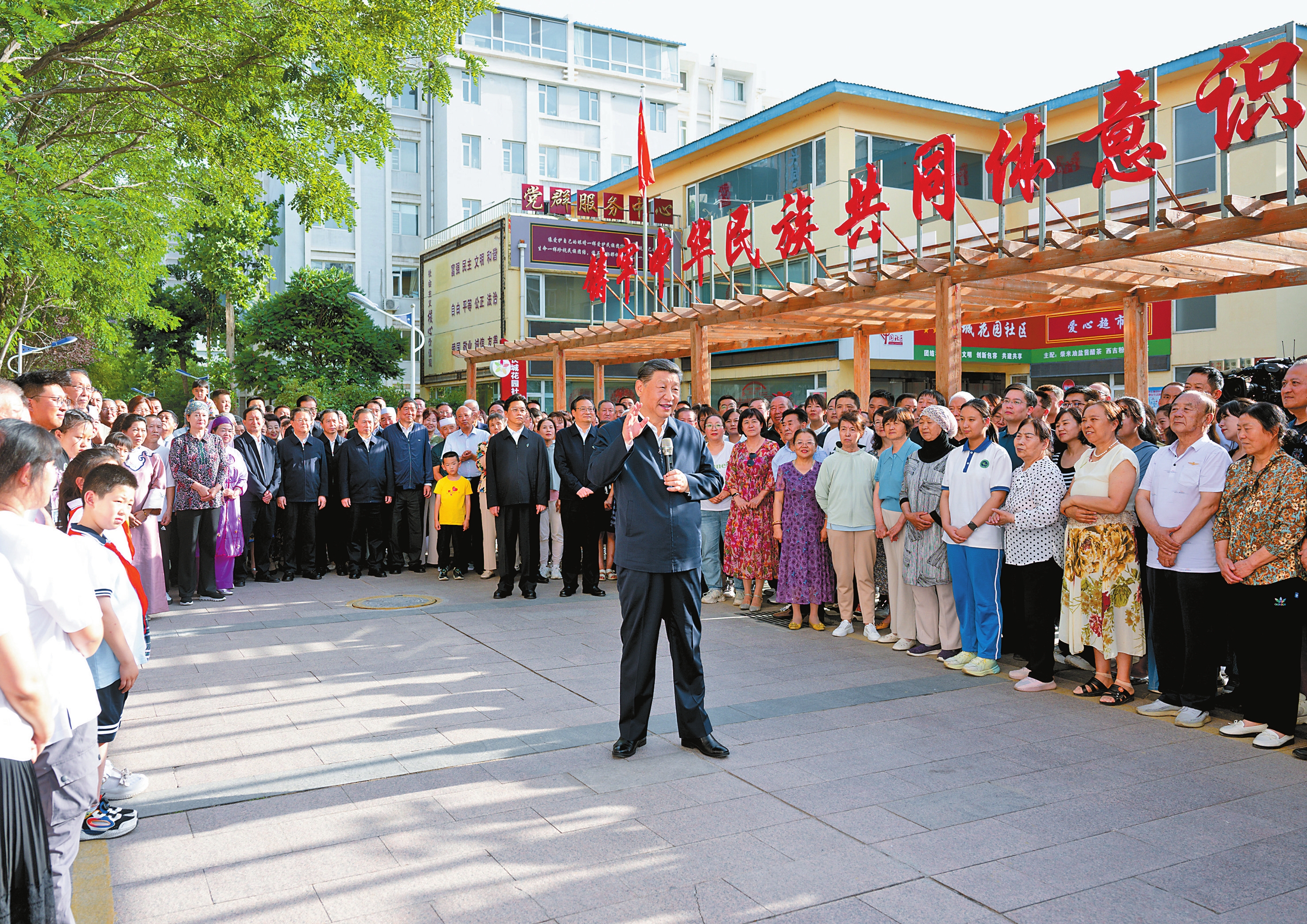 6月19日至20日,中共中央总书记、国家主席、中央军委主席习近平在宁夏考察。这是19日下午,习近平在银川市金凤区长城花园社区考察时,同社区居民亲切交流。新华社记者 谢环驰 摄